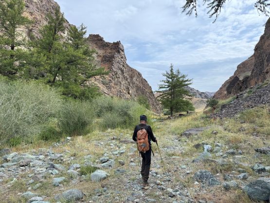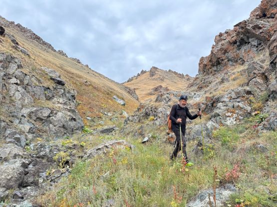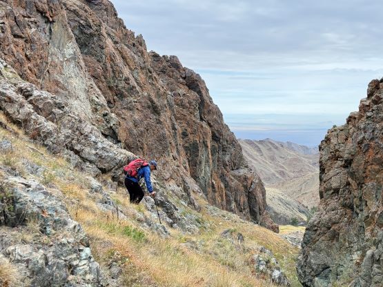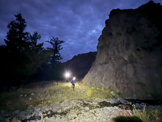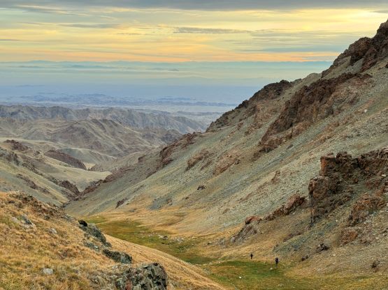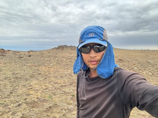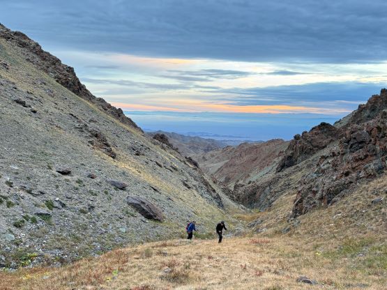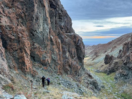 Our guides woke up early to prepare our breakfast. Petter and I got up at 4:10 am and were already hiking by 4:45 am. That was almost 20 minutes earlier than planned but I liked it. We would be only accompanied by one climbing guide and all three of us needed to use the head-lamps for about 45 minutes. I thought we would have a road to follow based on the satellite images but the reality was a mix of animal trails, open grassy slopes and easy creek crossings. We were able to mostly stick to the bottom of this valley, including the section that seemed like a canyon on the satellite map. The canyon turned out to be trivial. We had been aiming for that said bump on the north slopes of Dünkheger and we were doing better than expected. The terrain had been giving us very little trouble. The story after this would be kept vague but our peakbagger dots were green and you all know how much “black-and-white” that Petter and I are in this game. The route itself is honestly no brainer and needed no additional explanation. It’s a class 1 off-trail hike with the only annoying section being a swamp in the middle of a shallow valley. I had very little time to fuss things around so simply plodded through the swamps both ways and got my shoes thoroughly water-logged.