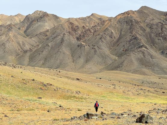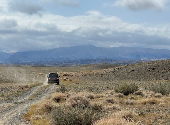 The following day was a travel day. We were not terribly far from Dünkheger but we had run out of paved roads. My GPS eventually recorded a single way of over 130 km distance from the end of the pavement to our basecamp. We left westward from Bulgan and quickly encountered the queue of trucks next to the Chinese border. Our head guide later told us that it might take several days for these trucks to cross the border. We then did the next 50 km driving parallel to the border, sometimes within a handshaking distance. I could totally see the slogans on the other side but I’m not allowed to post any picture of the Chinese border here. But since I read Chinese I could make out the words, that translate into “only one thing in one life, to protect our mother country’s border security”. They had a paved road, fences, border posts (and presumedly cameras) for basically the entire stretch and I wondered what would be the practical reasons to spend that much on that, given that Mongolia would never attack China.