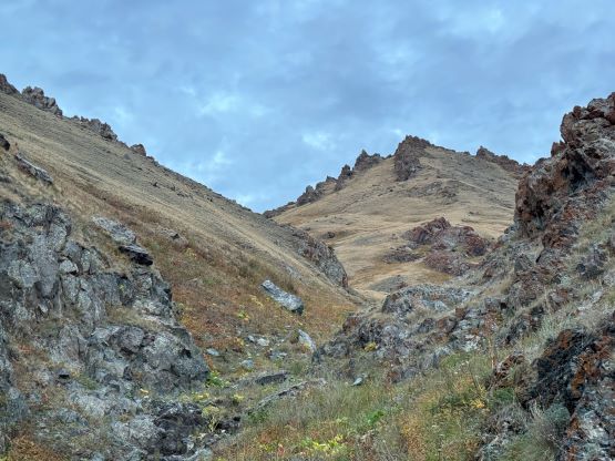 Our guides woke up early to prepare our breakfast. Petter and I got up at 4:10 am and were already hiking by 4:45 am. That was almost 20 minutes earlier than planned but I liked it. We would be only accompanied by one climbing guide and all three of us needed to use the head-lamps for about 45 minutes. I thought we would have a road to follow based on the satellite images but the reality was a mix of animal trails, open grassy slopes and easy creek crossings. We were able to mostly stick to the bottom of this valley, including the section that seemed like a canyon on the satellite map. The canyon turned out to be trivial. We had been aiming for that said bump on the north slopes of Dünkheger and we were doing better than expected. The terrain had been giving us very little trouble. The story after this would be kept vague but our peakbagger dots were green and you all know how much “black-and-white” that Petter and I are in this game. The route itself is honestly no brainer and needed no additional explanation. It’s a class 1 off-trail hike with the only annoying section being a swamp in the middle of a shallow valley. I had very little time to fuss things around so simply plodded through the swamps both ways and got my shoes thoroughly water-logged.