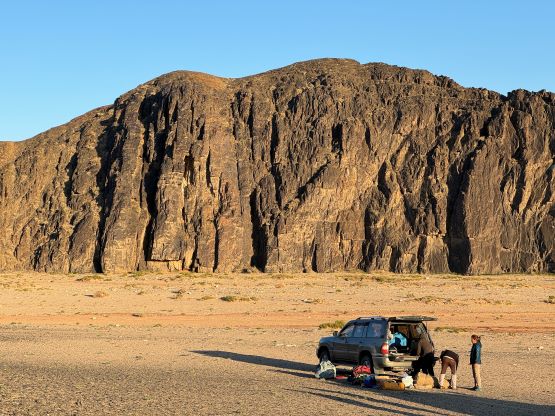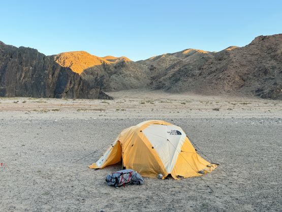 The final itinerary did not include Ikh Ovoo but we would see. We were able to earn 4 extra days by doing Jargalant, Bumbat and Bataar in a timely manner and we eventually brought up Ikh Ovoo again to Gangaa at Sutai’s basecamp. That’s where we would have to make a tough decision whether to go directly towards Ikh Ovoo afterwards or eastwards across the paved highway towards Khasagt, skipping Ikh Ovoo. Gangaa understood our needs and the reasons behind this request, but our drivers refused to drive 600 extra kilometers off pavement and that’s when we learned the actual remoteness of this objective. On the Gaia map there’s a “yellow road” that goes to the NW side of the mountain. I had assumed that road to be entirely paved as it links the city of Altai to another Chinese border crossing but that was actually not the case. This road in fact sucks balls with some very rough going canyons. We understood the drivers’ frustration because Ikh Ovoo was not on the original agreement. It was completely unfair for them to do that much extra driving especially that we were also using Manlai’s personal vehicle so there came our negotiation skills. I was hoping that Petter could take care of this part because I’m definitely more of a mountaineer than a business man, but Petter was already in the tent and it was up for me to bargain. I honestly had very little clue but then I went to Richard/Denise’s tent (by pure coincidence the two Mongolian teams overlapped at Sutai Uul), and learnt that their drivers’ wage was only 75 USD per day, excluding petro costs. I thought Ikh Ovoo would add 2 full days of driving so I bargained with 150 USD per driver with us also paying the extra gas. Everyone agreed including Petter and Gangaa, so done deal.