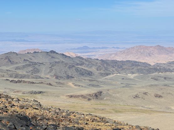 Our first view of the range Aj Bogd, hundreds of kilometers ahead