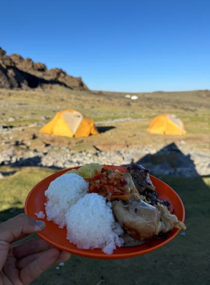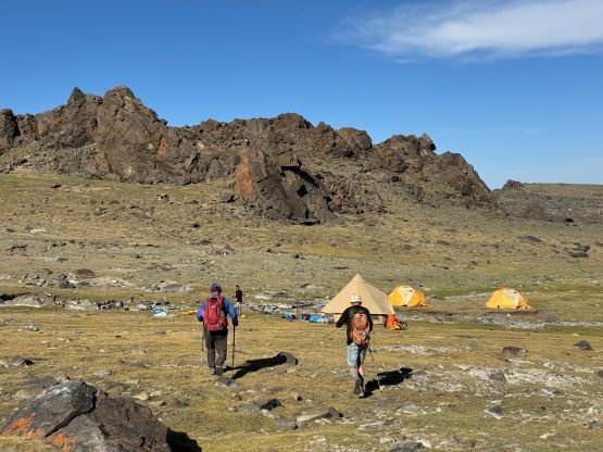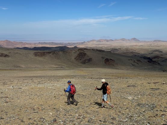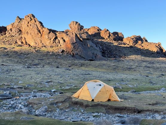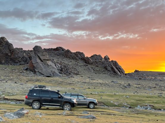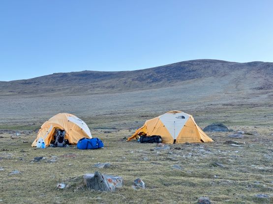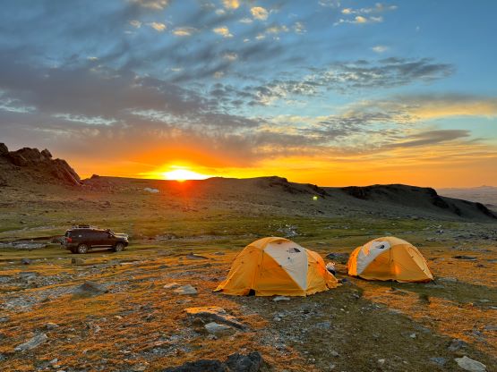 I decided to follow behind and not put my brain in more use on the descent, and Manlai did a great job leading us down taking a different but equally efficient way. We were back in the camp in just over 2.5 hours round trip, covering about 9.5 km distance and less than 600 m elevation gain. This was one of the fastest ascents I’ve done at 3800 m altitude. The terrain’s easy and Petter was certainly very fast on this kind of country, that it took everything out of me to close in that 5 minutes of gap, and I was sure Manlai (who had soloed Shishapangma without oxygen) also worked the hell out of him to catch up to us on the summit. Gangaa was already preparing the meal for us upon our arrival and the evening routine was relatively uneventful. The local people did require us to move our tents further away from that tiny stream which provided their drinking water, and we did not see Rob, Deividas, Richard and Denise showing up. I told Petter that they probably wouldn’t want to drive that last kilometer of rough roads and I was actually correct. The next morning we packed up and drove out, and immediately saw one of their vehicles and one of their tents. The other vehicle was apparently left behind in Altai due to mechanical issues.
