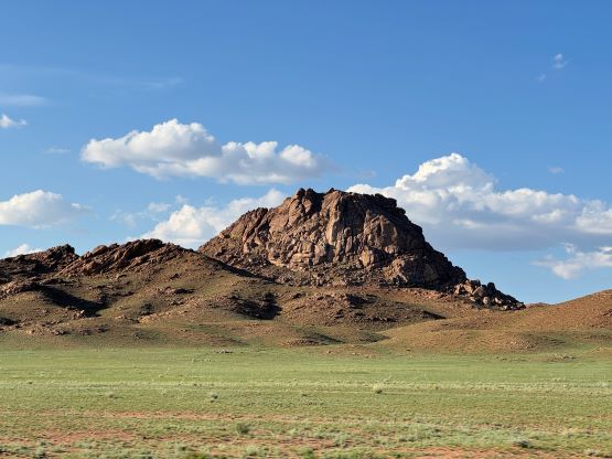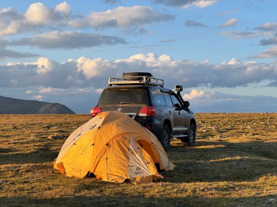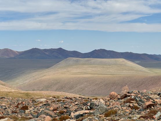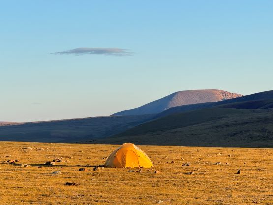 There are a lot of driving between successive climbs in Mongolia and 2 days are often needed. We spent a full day driving from the base camp on west side of our previous objective, namely Otgon Tenger to Khyargas Nuur (Lake) and camped on the shore. The scenery was excellent but there were unacceptable amount of bugs in that area, making the stay unpleasant. I nevertheless stayed up late outside the tent, dressed in bug-proof layers as I needed to catch up with the trip reports. The next day we drove towards Ulaangom but went south before reaching the city. We then spent at least 3 or 4 hours driving the increasingly rough access roads on the east side of Kharkhiraa Range. The satellite images weren’t helpful and we essentially had to rely on these people’s local knowledge. They had been there and climbed this peak, so we trusted their navigation. It’s useless to describe the access in words because the easiest way for that purpose in this modern era of technology is to track a GPX file, which I did on the return. The last few kilometers were essentially a cross-country travel in Landcruisers but we did manage to get to the high pass between our objective and a bonus P100m bump to the east. This was at almost 2900 m elevation. I decided to solo hike that bonus bump in the afternoon while the rest of the team rested at the base camp. The hike took me under 2 hours on a slow pace.
