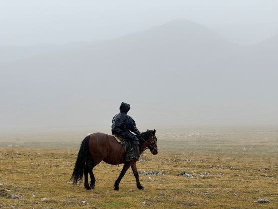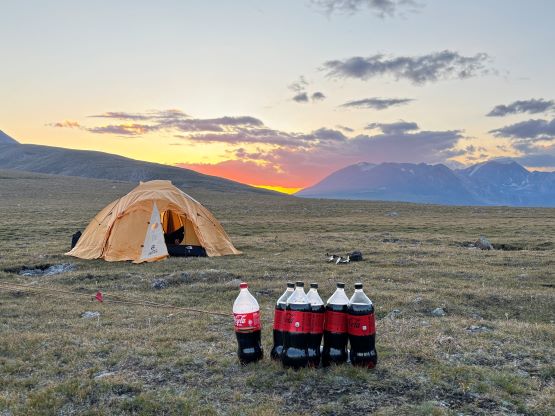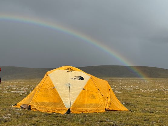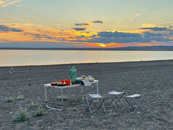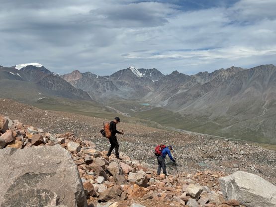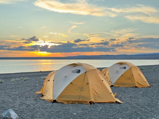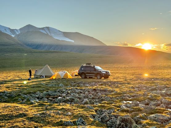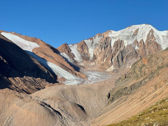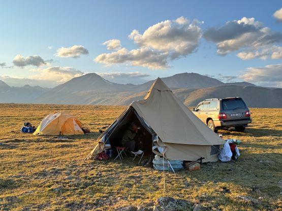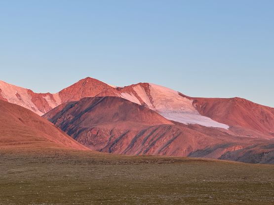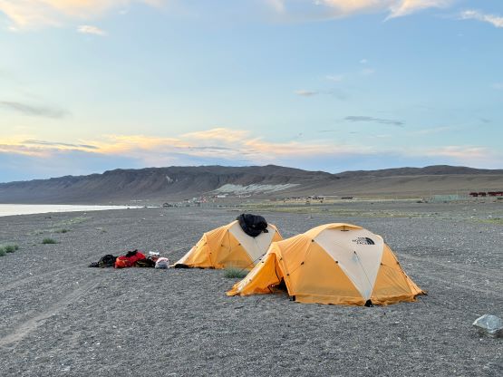 After radioing the base camp we decided to head down as quickly as possible. We traversed back across that glacial cap roped up, and then descended the horrific choss route to bypass the steepest part of the glacier. We might not have picked the best way as the route was quite unpleasant even by my standard. At one point there was a refrigerator sized boulder tumbling down towards me but there was enough distance for me to do something. I was already near the edge of the glacier so jumped on and ran as far as I could. The boulder stopped long before reaching the glacier but another basketball sized one came down the glacier and this was from ice melting. I dashed halfway across the glacial tongue and finally decided it was safe enough to stop and wait for the others. Petter and Manlai showed up later with their crampons but I was okay to descend the rest of this glacier sans them. The moraine was just as unpleasant as a few hours ago but switching to trail-runners made them a bit more tolerable. The rest of the return was uneventful and we finished in over 10 hours round trip. And as mentioned earlier a series of thunderstorms came during the evening but it cleared up nicely overnight. The next day we drove out to Ulaangom to drop Adam off at the bus station so he could return to Ulaanbaatar as quickly as possible (no available domestic flight), and then we drove south towards the next objective.