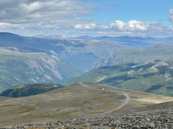 The weather turned out to be extremely fickle in this country but according to some, we just happened to be in an unlucky period of bad timing. That best 1-day window did happen and that was foreseeable even from a few days beforehand. We routed the itinerary to put Galdhøpiggen on this particular day and that involved driving a few hours out of the way. That was fine. The previous day was a big and exhausting one because the weather was also sort of on our side, that we eventually got to the steep road heading upwards towards Juvasshytta by midnight, after finishing an ascent of Store Smørskredtind. It wasn’t too sure about the camping oppourtunities at Juvasshytta and it was also forecasted to be very cold, so the plan was to find a random spot to car-camp on the lower roads. Judging by the amount of money to stay in that lodge (over 200 USD per person), I was sure that finding the legal camping spot could be the crux of the day. We eventually did find a spot to pitch a tent, on some backroads behind the “no camping” signs and right in front of a farmer’s house so probably not very legal. We got there at past midnight and thought nobody would bother to come out and fuss around with us. We did eventually get some decent hours of sleep but our gears were all soaked wet from the dew. The alarm went off at 5 am and we did our morning routine, and it was actually not that cold. I then drove us up and opted to park the vehicle at the emptied ski resort (turned out that they hadn’t opened for the day yet) instead of the village of Juvasshytta, to give 1 km of advantage per way. We also didn’t come across any paying machine at this ski resort so even though this wasn’t a free road we refused to pay anything. I knew we were definitely gambling but I had never gotten a ticket in my entire peak-bagging career, so why not bid on that for another time.