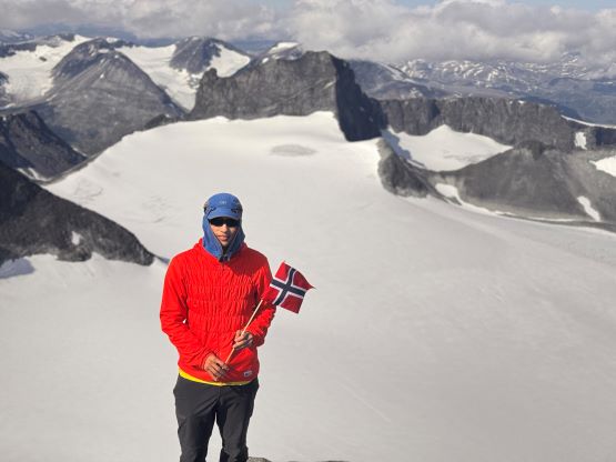 The weather turned out to be extremely fickle in this country but according to some, we just happened to be in an unlucky period of bad timing. That best 1-day window did happen and that was foreseeable even from a few days beforehand. We routed the itinerary to put Galdhøpiggen on this particular day and that involved driving a few hours out of the way. That was fine. The previous day was a big and exhausting one because the weather was also sort of on our side, that we eventually got to the steep road heading upwards towards Juvasshytta by midnight, after finishing an ascent of Store Smørskredtind. It wasn’t too sure about the camping oppourtunities at Juvasshytta and it was also forecasted to be very cold, so the plan was to find a random spot to car-camp on the lower roads. Judging by the amount of money to stay in that lodge (over 200 USD per person), I was sure that finding the legal camping spot could be the crux of the day. We eventually did find a spot to pitch a tent, on some backroads behind the “no camping” signs and right in front of a farmer’s house so probably not very legal. We got there at past midnight and thought nobody would bother to come out and fuss around with us. We did eventually get some decent hours of sleep but our gears were all soaked wet from the dew. The alarm went off at 5 am and we did our morning routine, and it was actually not that cold. I then drove us up and opted to park the vehicle at the emptied ski resort (turned out that they hadn’t opened for the day yet) instead of the village of Juvasshytta, to give 1 km of advantage per way. We also didn’t come across any paying machine at this ski resort so even though this wasn’t a free road we refused to pay anything. I knew we were definitely gambling but I had never gotten a ticket in my entire peak-bagging career, so why not bid on that for another time.
