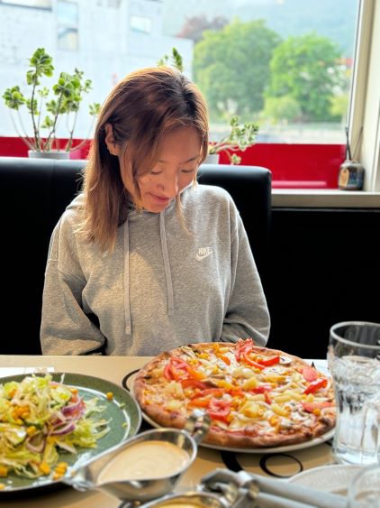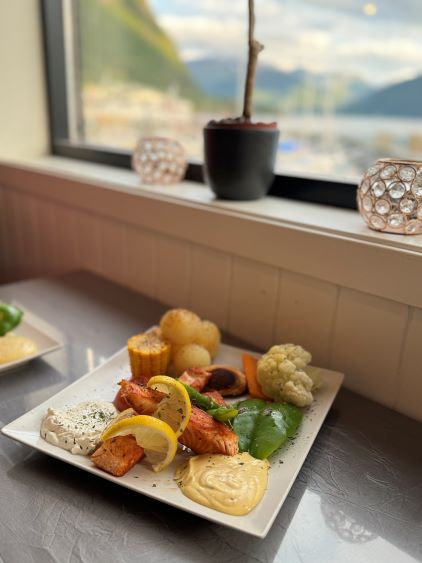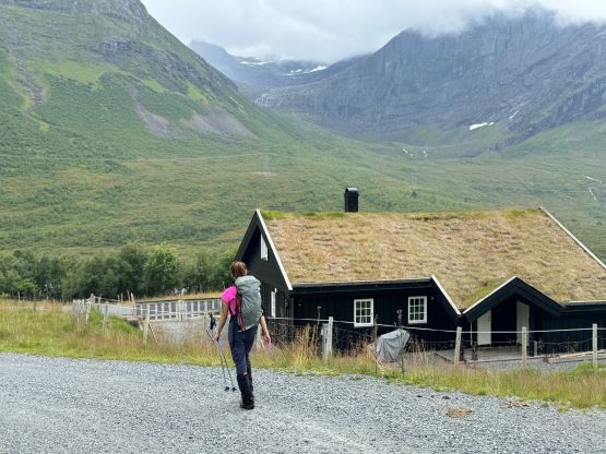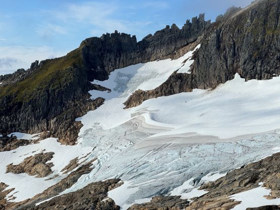 After having too much fun up there we decided to start descending. Those guys had come up from a different route from the south, and planned to descend the same way that Erica and I took. They took a higher traversing line back across the glacier but we opted to follow our existing set of footprints. I liked to draw a more direct line on the GPX map and it’s more fun to navigate around those crevasses. We did follow them descending a more roundabout but significantly easier route to avoid those rock slabs, and eventually caught up to them at the bottom of that choss/snow chute. All of us opted to not use crampons and that required taking a slightly different line staying more on choss than snow. For the entire day I thought about to do those peaks of Sætretinden but eventually decided to conserve energy, as the weather was not bomber. This was definitely the correct decision as we got hit by a fairly heavy rain storm while crossing that swampy section on the descent. The rain did not last long so we didn’t get soaked, but it would not be very pleasant to be still up high. We eventually finished the round trip in 7 hours 15 minutes taking in account of everything. The rain had fully stopped so we took our time cooking lunch at the trail-head. We eventually drove back into Volda and checked into our next homestay. We earned ourselves a few hours of resting time but I took advantage of that to catch up with the trip reports. Erica found us a nice restaurant in Ørsta which was about 10 minutes of driving away, so we drove back out in the evening and came back another hour or two later and settled for the night.