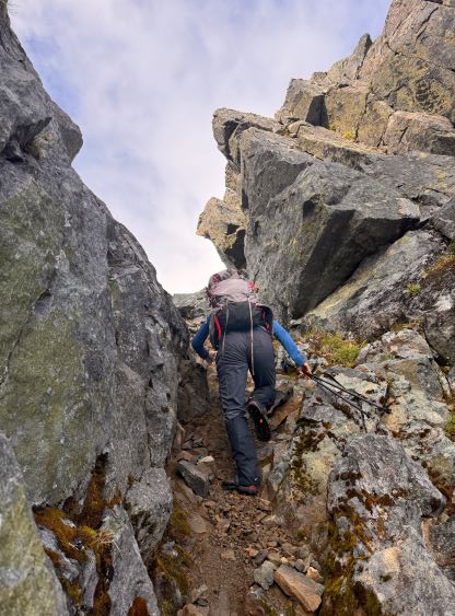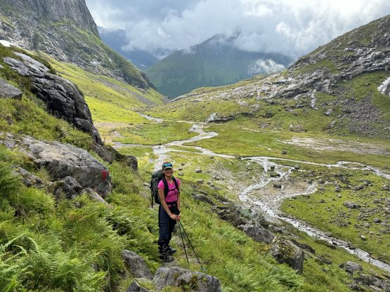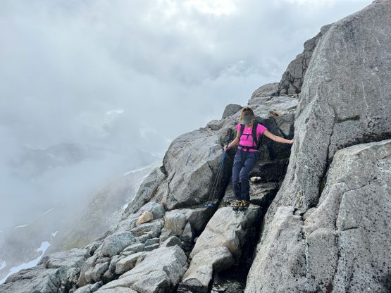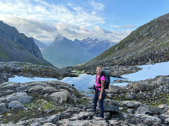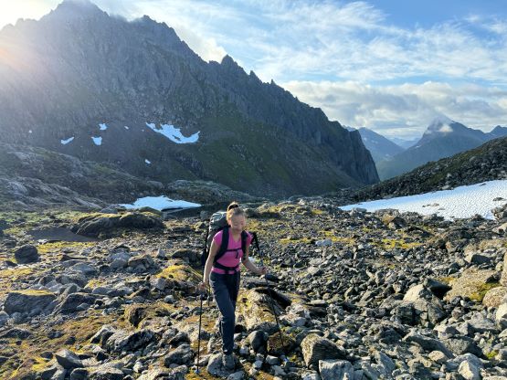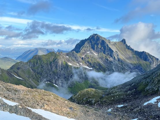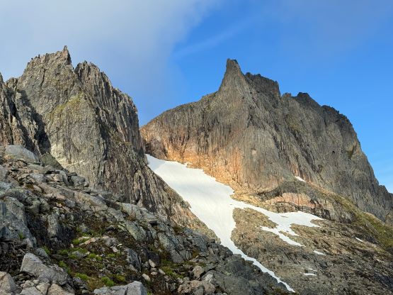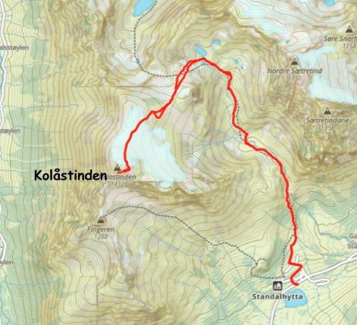 Kolåstinden is the highest peak in the large area to the NE of Orsta and subsequently boasts over 1000 m prominence. This is also an iconic looking summit that doesn’t quite offer an “easy” route to the top. It seems like most parties had climbed this peak on skis in the spring but it is also very doable in summer, with some simple glacier travel and exposed scrambling near the summit. There’s a well-used trail that ascends into the valley between Kolåstinden and Saetretinden and that can be used as the access trail in summer. I had downloaded a GPX track from Peakbook but that involves a full traverse of Kolåstinden and the north and south summits of Sætretinden, which wasn’t super helpful but I had figured out the most efficient way based on the topographic maps. This was one of the primary objectives between Erica and I because it involved everything.