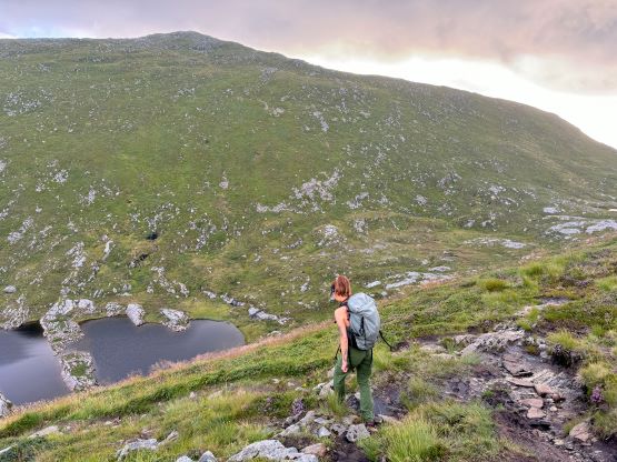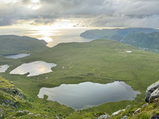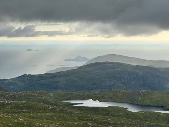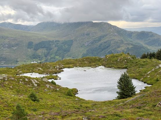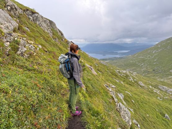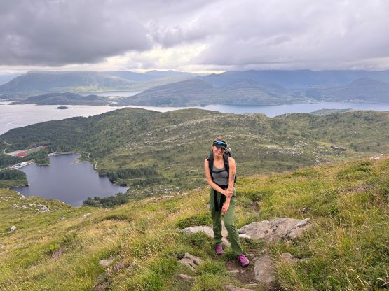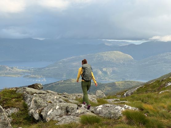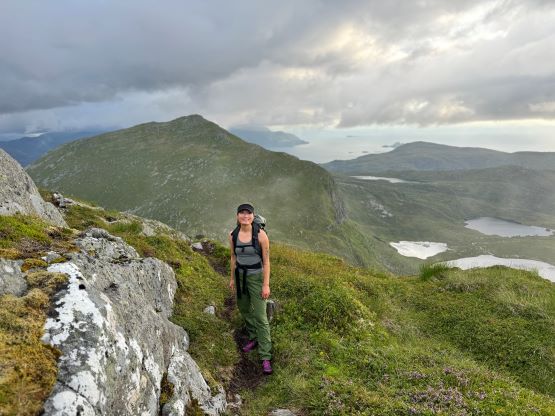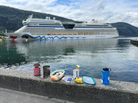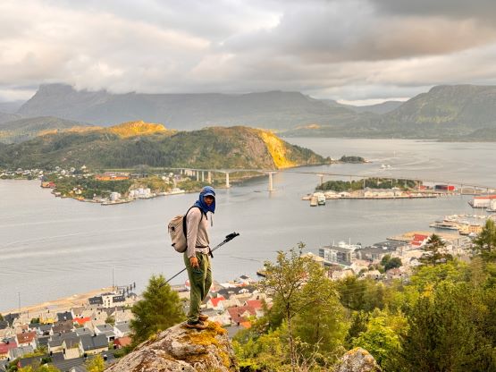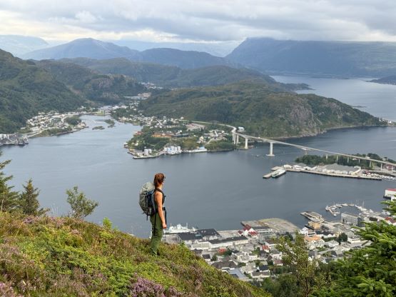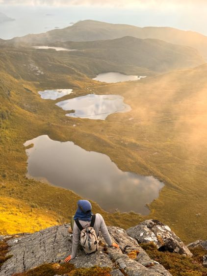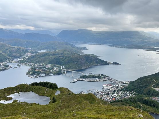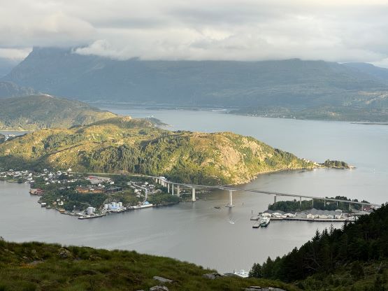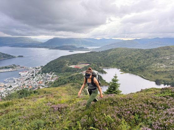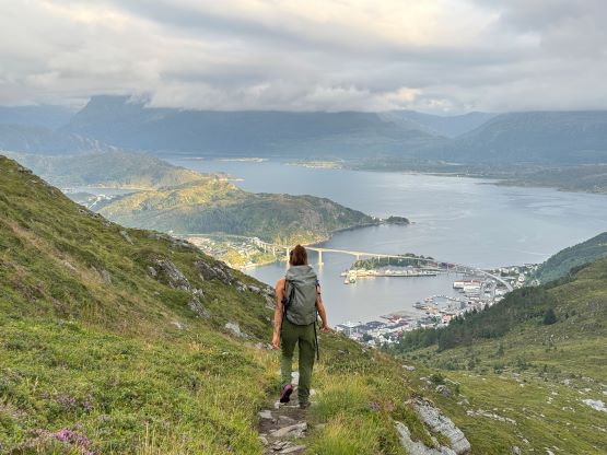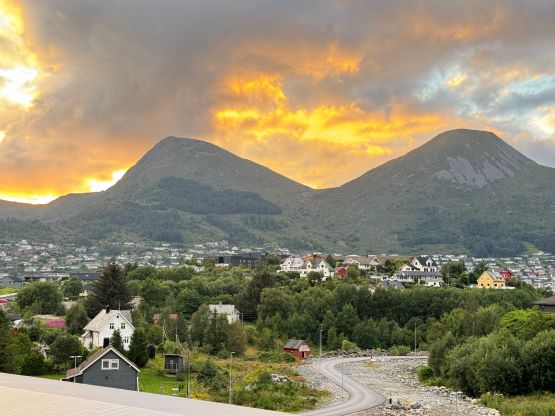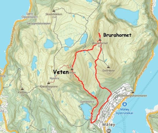 The trails on the Gaia map are incomplete for the area but I had seen a trail map near the start of the hike, that a trail descends from Veten/Brurahornet saddle directly down towards the city of Måløy. It turned out that the trail branches off very much near the summit of Brurahornet and is well signed and easy to follow. We skipped the sub-P100m, but named bump on the SE Ridge of Brurahornet and went straight down this trail back into the city, and eventually had to slog ~2 km back to the parking lot along some paved roads. It was already almost 10 pm so we cooked dinner at the parking lot, and unfortunately the area was quite buggy. The original plan was to drive another 3 hours towards Kolåstinden but I determined that we no longer had the energy to drive that far away. The alternative plan was Trollvasstinden which was only an hour and half away, and we eventually got to the trail-head past midnight.