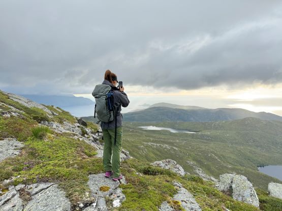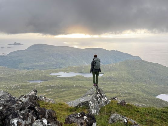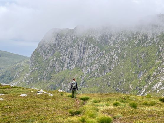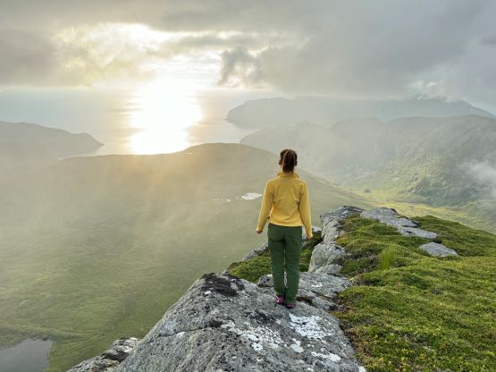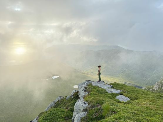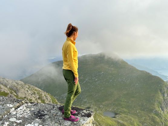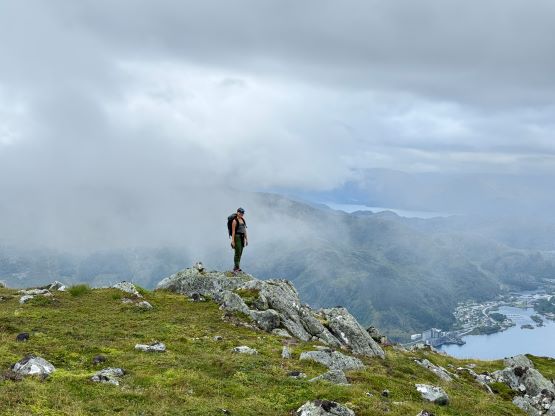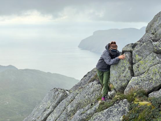 We did not start hiking until the evening, but the dusk hours are extremely long at this latitude and at this time of a year, that we’d have light until midnight. I had done no research about these objectives beside the tracks on the Gaia map so we parked on the south side of a substantial dammed lake south of Veten. The trail was well marked and easy to follow, and the lower section through the forest reminded both of us Vancouver Island for some reasons. It wasn’t very hot but the air was extremely humid. Thankfully after a while of slogging we got above the treeline and from there we would be accompanied by some incredible views. The ascent of the SE Ridge was longer than I thought as the views were very foreshortened, but with the ever changing views it never felt too boring. In short time we arrived at the summit. The fog came in and out creating some dramatic views so we lingered on this summit for quite a while.