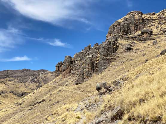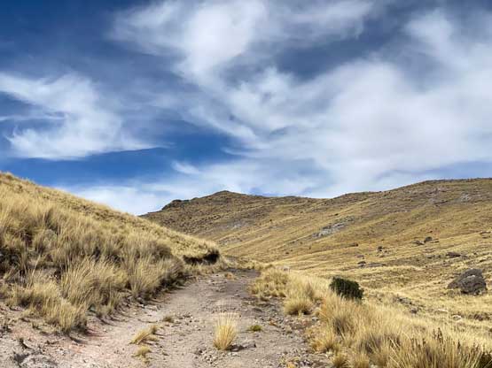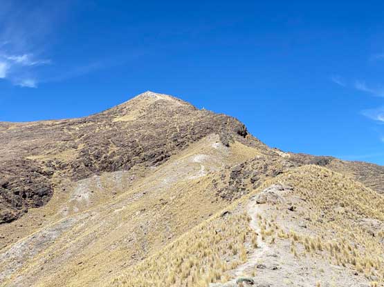 In the morning I left the hotel and took a taxi to the bus station and had no trouble hopping into a colective (carpool van) towards Yunguyo. This ride would be more than 2 hours away but they only charged me 11 soles, which was much cheaper than I thought. The drive positioned me in a very awkward spot so the sitting was very uncomfortable. I guess it was cheap for a reason. After getting dropped off in Yunguyo I couldn’t find any taxi available. I started to ask around in broken Spanish and eventually realized that I had to walk towards the downtown area, which was opposite as my wanted direction. I followed their instruction and came across a group of taxi. It then took me a while to explain where the heck I wanted to get dropped off (all in Spanish) and they eventually understood. However, they told me it was forbidden to climb this mountain, but I said “tengo experiencia” meaning I had experience. After a bit of hesitation one of them decided to drive me there and charged me 15 soles. The road I planned to take came from the north side of this peak near the small village of Acari. We drove there, past the village but the actual road quickly degraded into a steep and rough 4×4 road. The taxi was nowhere 4×4, but I said I would pay 5 extra soles to get dropped off as far up as he wanted. It turned out that I used that 5 soles to shave off only 1 km and 100 m elevation gain… I couldn’t blame the driver as no way would I want to push a small 2wd car up any farther anyway.