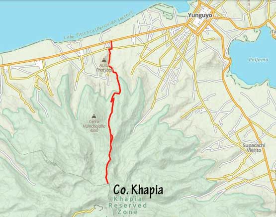 Co. Khapía is a broad massif that stands out of the surroundings with over 900 m prominence on the Peruvian side of Peru/Bolivia border. The nearest town is Yunguyo and it also locates with close proximity to Lake Titicaca. Despite the popularity of Lake Titicaca this peak is nowhere “popular”. In fact, finding “beta” on the internet had been difficult either in English or in Spanish. I cam across this peak solely by browsing the maps. I only had one day to bag a substantial-ish peak in the vicinity of Lake Titicaca and I really wanted to get this one, but I had to spend a lot of time to convince myself that it was doable in a day from Puno. The transportation logistics would have uncertainties that I must figure out at the last minute, but I decided to face it. The other alternative was really not that exciding at all.