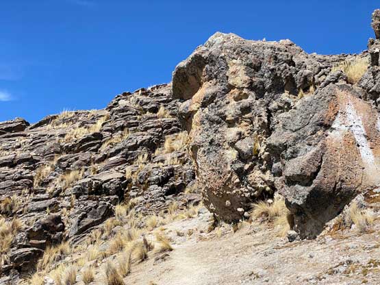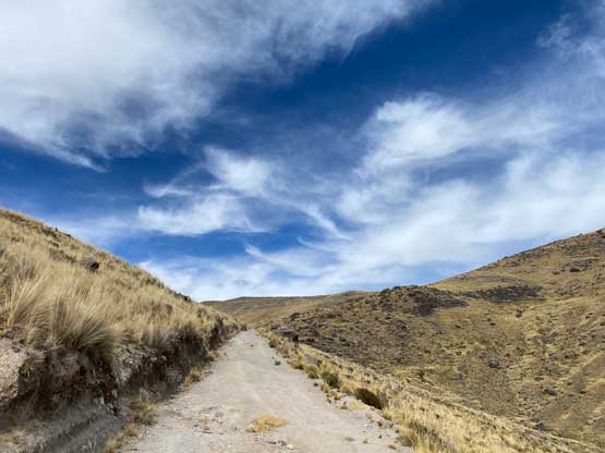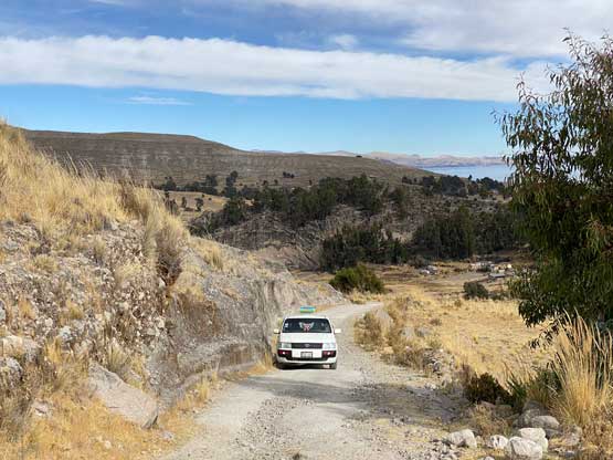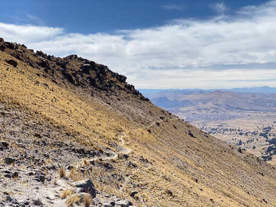 In the morning I left the hotel and took a taxi to the bus station and had no trouble hopping into a colective (carpool van) towards Yunguyo. This ride would be more than 2 hours away but they only charged me 11 soles, which was much cheaper than I thought. The drive positioned me in a very awkward spot so the sitting was very uncomfortable. I guess it was cheap for a reason. After getting dropped off in Yunguyo I couldn’t find any taxi available. I started to ask around in broken Spanish and eventually realized that I had to walk towards the downtown area, which was opposite as my wanted direction. I followed their instruction and came across a group of taxi. It then took me a while to explain where the heck I wanted to get dropped off (all in Spanish) and they eventually understood. However, they told me it was forbidden to climb this mountain, but I said “tengo experiencia” meaning I had experience. After a bit of hesitation one of them decided to drive me there and charged me 15 soles. The road I planned to take came from the north side of this peak near the small village of Acari. We drove there, past the village but the actual road quickly degraded into a steep and rough 4×4 road. The taxi was nowhere 4×4, but I said I would pay 5 extra soles to get dropped off as far up as he wanted. It turned out that I used that 5 soles to shave off only 1 km and 100 m elevation gain… I couldn’t blame the driver as no way would I want to push a small 2wd car up any farther anyway.