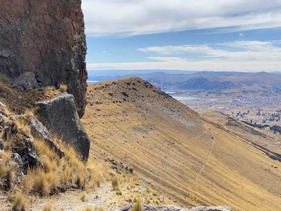 Co. Khapía is a broad massif that stands out of the surroundings with over 900 m prominence on the Peruvian side of Peru/Bolivia border. The nearest town is Yunguyo and it also locates with close proximity to Lake Titicaca. Despite the popularity of Lake Titicaca this peak is nowhere “popular”. In fact, finding “beta” on the internet had been difficult either in English or in Spanish. I cam across this peak solely by browsing the maps. I only had one day to bag a substantial-ish peak in the vicinity of Lake Titicaca and I really wanted to get this one, but I had to spend a lot of time to convince myself that it was doable in a day from Puno. The transportation logistics would have uncertainties that I must figure out at the last minute, but I decided to face it. The other alternative was really not that exciding at all.