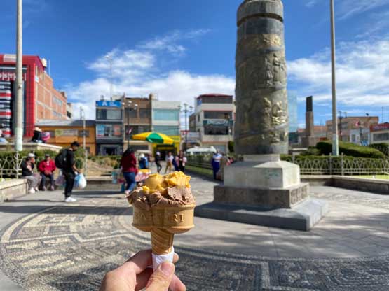 After forcing in some food and water I made quick work retracing my own route down the north side of this peak. Lower down I picked a better route staying more on the path avoiding unnecessary elevation regain and in no time I was back onto the road. The plod down this road into Acari felt like eternity but eventually I got there. I walked past several large, unleashed dogs. I was really concerning about this stretch but they turned out to be much more friendly than the ones in Huaraz. Only one of them barked at me from very far away. I was hoping that someone would offer me a ride down to the highway but to no avail, so I walked all the way down to the road. I then started walking towards Yunguyo a few kilometers away, and luckily someone saw me and offered me a ride. This dude even offered to drop me right into Yunguyo’s downtown as I said I was hungry and needed food. He did not ask for any money but I paid him several soles nonetheless. Again all of the communication had to be done in Spanish as nobody speaks English in this rural area. I then found some very cheap ice cream (1 sol) and a cheap but good lunch (8 soles). Two school teachers saw me struggling with direction and offered to walk me back to the bus station. One of them even spoke some English but I wasn’t sure whether my broken Spanish was better or her broken English. I then took the 11 soles colective back to Puno and arrived in Puno in the late afternoon. This was overall a very fun day figuring out the logistics by myself and greatly improved my confidence to travel in foreign countries.
