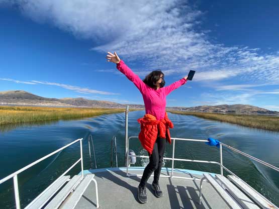 We were picked up from the hotel at around 8 am and by 9 am we were all inside the boat. The first destination was one of the Uros islands. There’s no hiking on those small islands as the islands themselves were rather man-made and floating on the lake’s surface. The ride was about an hour and the scenery was great. The locals showed us how the Uros islands were built and we even took a ride in one of their small boats.
