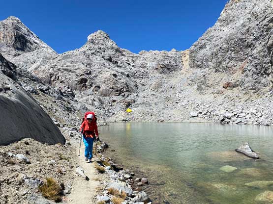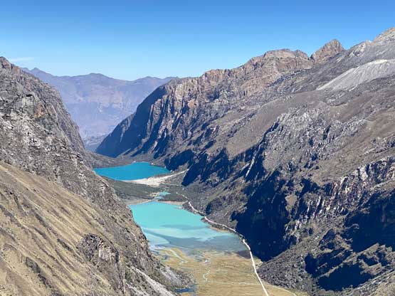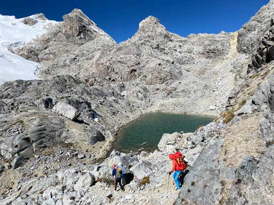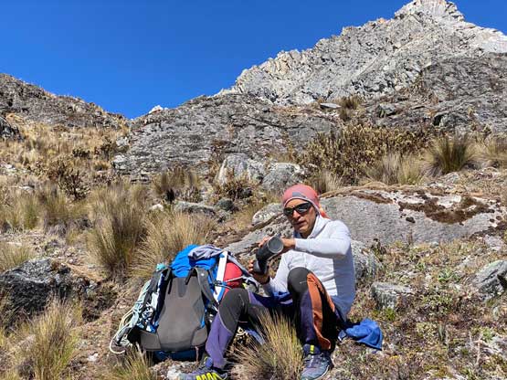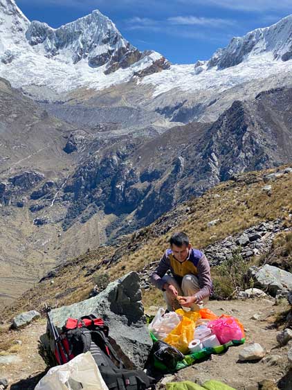 We opted to rest for over an hour to recollect as I was definitely feeling the illness and the lack of energy. The hike-out was particularly miserable given the pack’s weight but I was able to keep up the pace so didn’t say anything, but in my mind I was actually thinking to possibly buy a new ticket to just go home. But in the end I decided to hire an additional porter to help carrying weight on Alpamayo and stick to the original plan. Maybe I would start to feel better as who knows. Once back to the trail-head we were glad to see David patiently waiting for us there, and about 4 hours later we were back to Huaraz. We opted to take one rest day before starting Alpamayo’s expedition.
