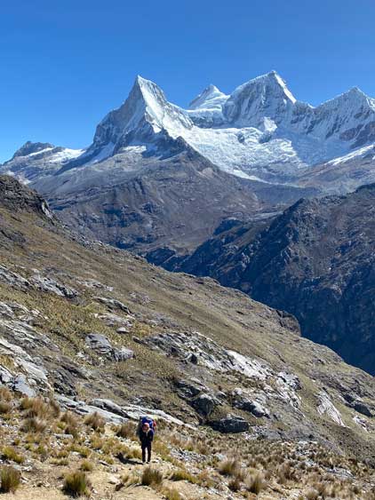 We opted to rest for over an hour to recollect as I was definitely feeling the illness and the lack of energy. The hike-out was particularly miserable given the pack’s weight but I was able to keep up the pace so didn’t say anything, but in my mind I was actually thinking to possibly buy a new ticket to just go home. But in the end I decided to hire an additional porter to help carrying weight on Alpamayo and stick to the original plan. Maybe I would start to feel better as who knows. Once back to the trail-head we were glad to see David patiently waiting for us there, and about 4 hours later we were back to Huaraz. We opted to take one rest day before starting Alpamayo’s expedition.