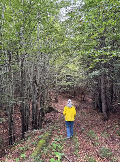 The start of the route follows a deactivated logging road but we quickly learnt that the expected trail might not be as good. The point where this trail was supposed to leave the road was unmarked and we had to wonder around for quite a bit to find the footbed. A trail did emerge higher up, but the quality reminded me some of the rougher hikes I’ve done in the Indonesian jungle. There were several muddy and slippery ramps and a lot of bushwhacking after passing the first (best) viewpoint. At one point we had to crawl on the ground like dogs as the bushes were too stiff to push around. It was also not very clear where exactly the true summit was, so we tagged at least two contenders with one having some views. But to get to the one with views there was more horrible bushwhacking…