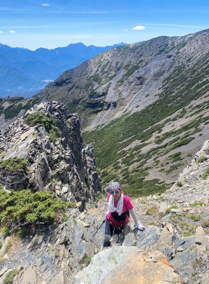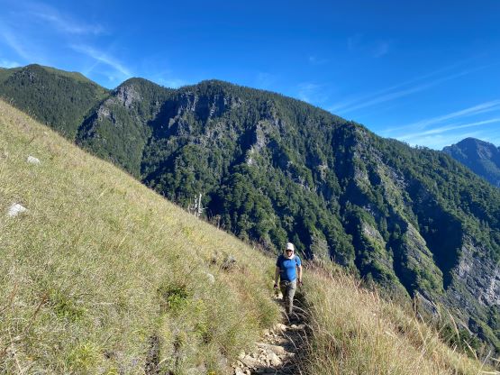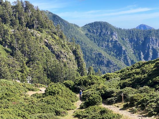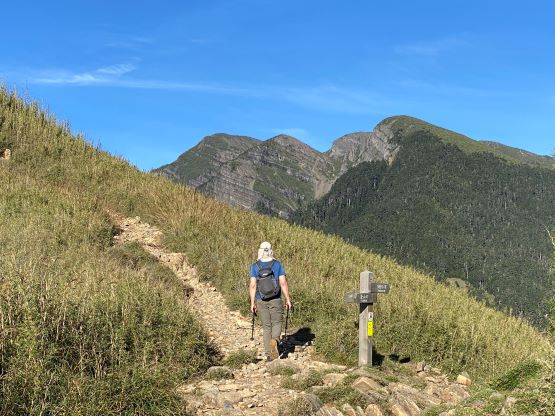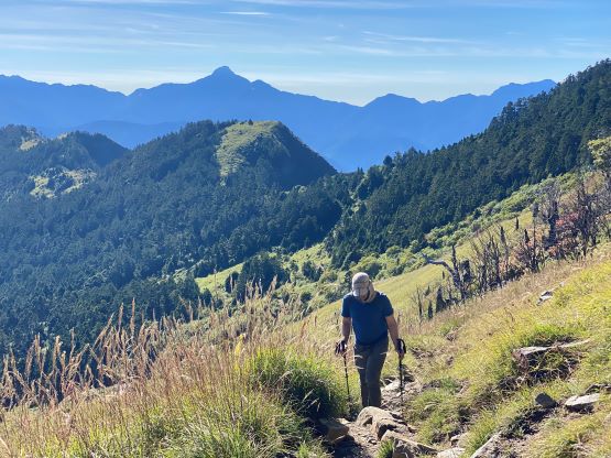Looking back, the North Peak of Xueshan (P100m) in the background