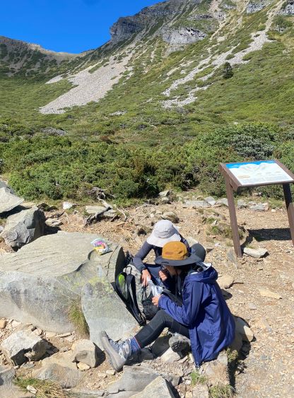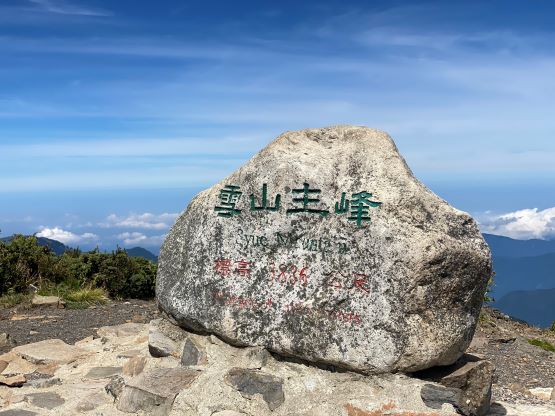 The famous summit stone on Xueshan’s main peak