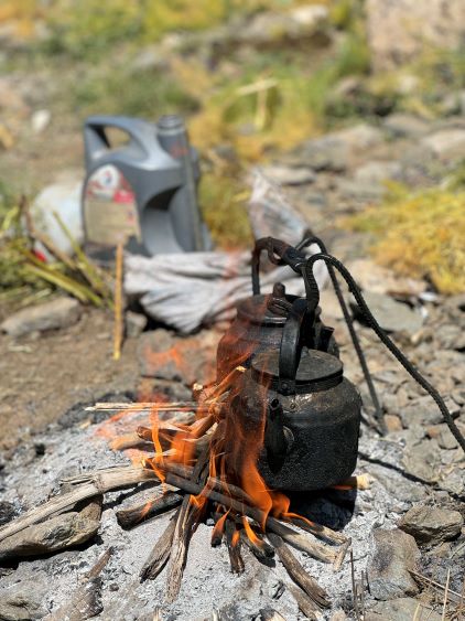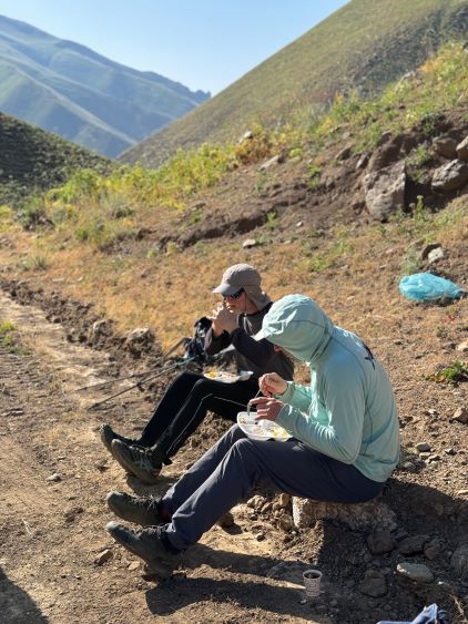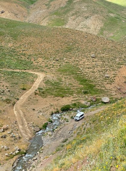 The only possible attack without hiking 20+ km distance was from the south, and we relied on our driver to transport us to the end of the dirt road that originates a few kilometers past the village of Kısıklı. This vehicle had some massive problems on the previous objective so even though the driver promised to have fixed the issues we had lost confidence on it, but at such last minute we really didn’t have many other options. The satellite images of this road conflicted themselves and I do believe that it has been actively maintained. The conditions of this road must have changed from year to year and sometimes they would just build a new stretch on the other side of the creek. In short, there were a ton of unknowns and I had already counted on the worst case scenario that we might have to walk the entire distance (which would be okay for me), but we did end up driving to the end of the valley. The driver did his job pushing the vehicle as hard as he could. There were two creek crossings and some rougher sections that definitely put the van in test. The switchbacks to the decommissioned mine site were not doable even in a 4×4, high clearance vehicle but that was okay. We were picked up from our hotel in Yüksekova at 6:30 am and were parked at the driveable end about an hour and half later. We spent the next hour chilling, preparing and having breakfast and I wanted to load up as much calories as possible before starting a hike. The served meal was basically the same as the day before, but had some added local vege/cheese.