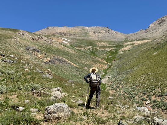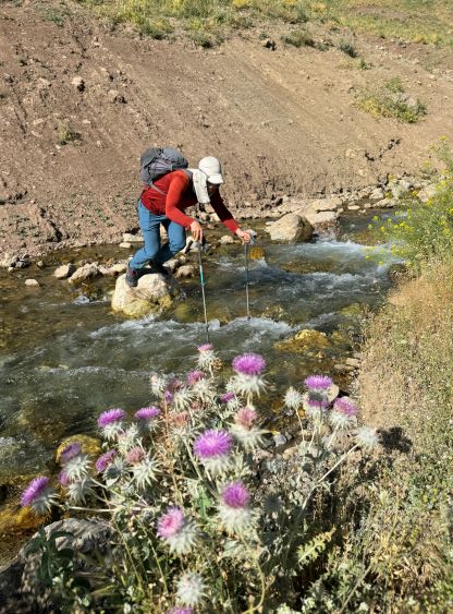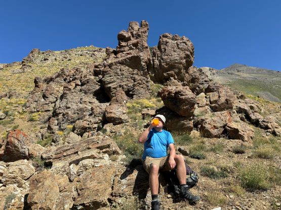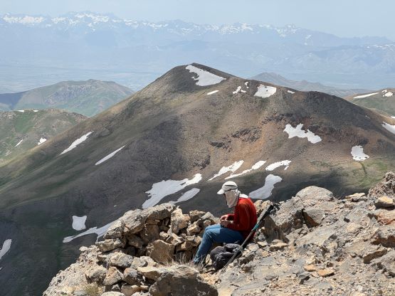 There was absolutely no “beta” about this peak beside the Gaia topo map and the satellite images and I would assume we’d ascend straight up the mostly-open SE slopes from where we parked, but the local guide led us into the valley following some trails. The creek crossing at the start turned out to be a bit tricky. A few of us jumped across but Dave ended up fording bare feet. The shepherd trail extends quite far into the valley and then into a side drainage, but it was becoming brushy. At one point we followed the local guide ascending onto one of the SE facing ridge/ribs and took the first break upon reaching the crest. Adam as usual, went ahead and eventually summitted an hour before the rest of us. I ended up doing the exact same as the day before, sticking with the majority of the team on the way up, but grabbing a bonus peak and descending a different route with Adam a few hours later. There were some game trails on the rib but the terrain was mostly open anyway, without much brush.