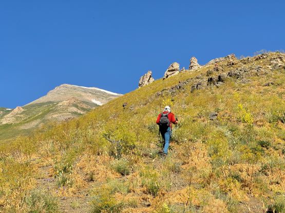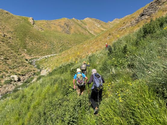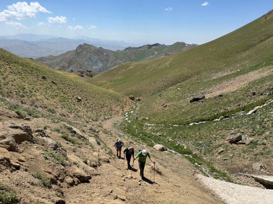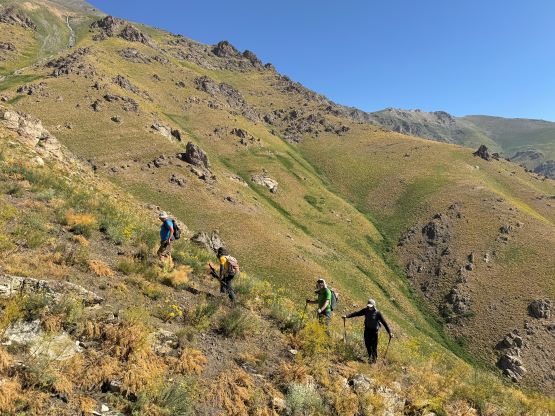 This alternative descent turned out to be quite eventful and we definitely made the correct decision from experience perspective. Minutes after dropping down the other side of Dola Koxe (SW Ridge) we saw two wolves running about a hundred meters ahead. Adam assured that we’d be okay, so we resumed. There were at least 5 or 6 bumps along the way but none boasts over 100 m prominence so I decided to bypass as many of those as possible to shorten the distance. The upper half of the route was mostly as expected, easy and undulated open terrain but the lower we went the more brushy it became. We also had to deal with several boggy sections in addition to lots of thorny plants. I would not classify any of the stretches “bushwhacking” but the brushes were certainly annoying. We also had to constantly make route-finding decisions as there were quite abundant micro-terrain. The worst was the 1-2 km above the upper end of the mining road, but the road itself was also harder than we thought. The lower switchbacks were chocked with thorns and we were forced to bail the road and go straight down the slopes. Thankfully the bushwhacking wasn’t too bad. We eventually showed up at the car 7 hours 20 minutes after departing in the morning, and the rest of the team showed up 25 minutes later after taking some not-so-short “short-cuts”. We were served with watermelon and tea just like the day before, and then were transported back to the city of Yuksekova.