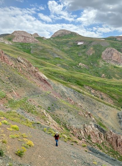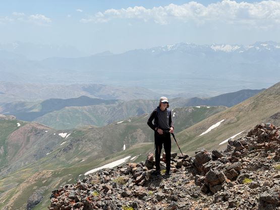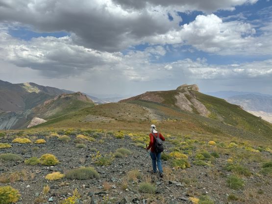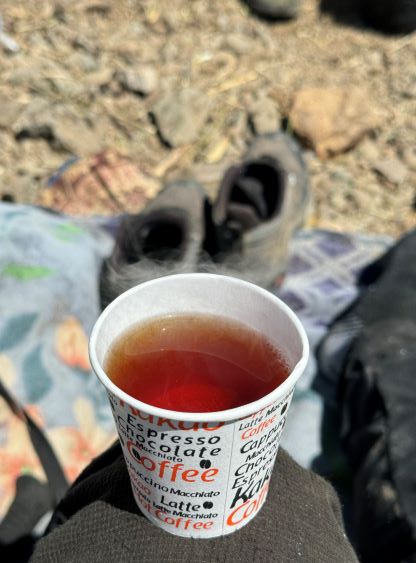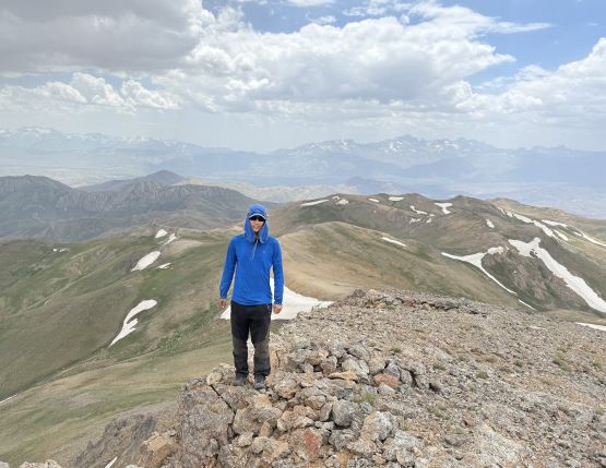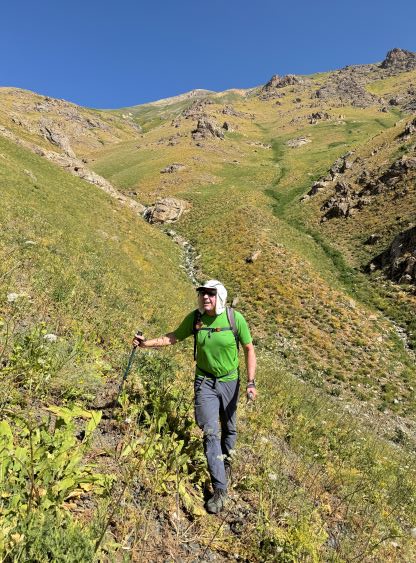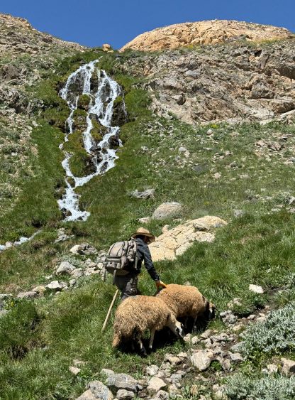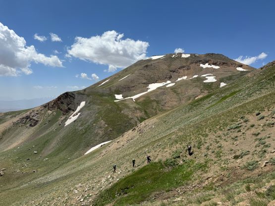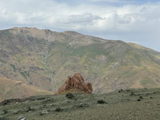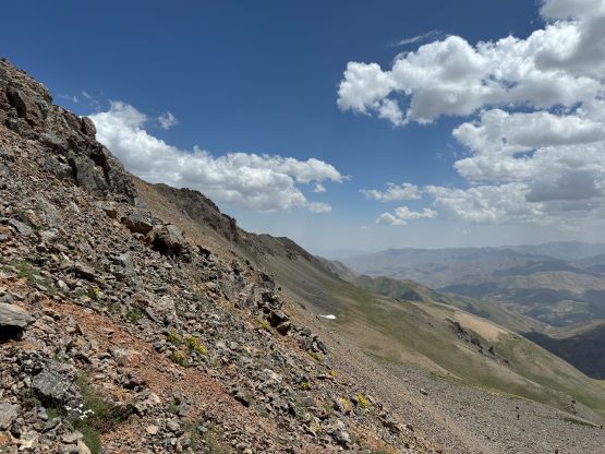 After what seemed like a long while we merged into an open valley at just below 3100 m elevation, and this valley was home to some shepherd camps with hundreds of sheep. There were some big dogs around so sticking together made the most sense, but our guide was able to communicate with the other shepherds to make sure Adam would be safe. Upon reaching a camp our local guide made tea for us and we stopped there for at least 40 minutes. It was a cool experience learning the culture and life in this valley. We took a couple more breaks higher up but at roughly 400 m vertically below the summit I decided to go ahead. I aimed at the SW Ridge and encountered some chossy terrain. There wasn’t much scrambling involved but the scree was a bit annoying. Everyone else ended up following the same route.