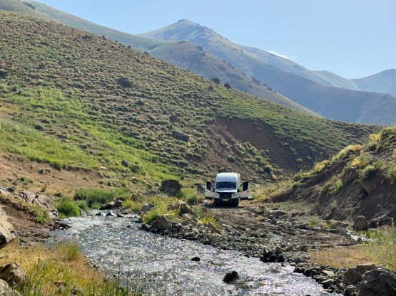 The only possible attack without hiking 20+ km distance was from the south, and we relied on our driver to transport us to the end of the dirt road that originates a few kilometers past the village of Kısıklı. This vehicle had some massive problems on the previous objective so even though the driver promised to have fixed the issues we had lost confidence on it, but at such last minute we really didn’t have many other options. The satellite images of this road conflicted themselves and I do believe that it has been actively maintained. The conditions of this road must have changed from year to year and sometimes they would just build a new stretch on the other side of the creek. In short, there were a ton of unknowns and I had already counted on the worst case scenario that we might have to walk the entire distance (which would be okay for me), but we did end up driving to the end of the valley. The driver did his job pushing the vehicle as hard as he could. There were two creek crossings and some rougher sections that definitely put the van in test. The switchbacks to the decommissioned mine site were not doable even in a 4×4, high clearance vehicle but that was okay. We were picked up from our hotel in Yüksekova at 6:30 am and were parked at the driveable end about an hour and half later. We spent the next hour chilling, preparing and having breakfast and I wanted to load up as much calories as possible before starting a hike. The served meal was basically the same as the day before, but had some added local vege/cheese.