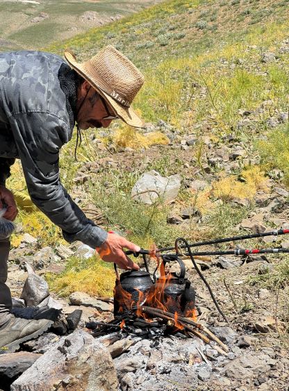 There was absolutely no “beta” about this peak beside the Gaia topo map and the satellite images and I would assume we’d ascend straight up the mostly-open SE slopes from where we parked, but the local guide led us into the valley following some trails. The creek crossing at the start turned out to be a bit tricky. A few of us jumped across but Dave ended up fording bare feet. The shepherd trail extends quite far into the valley and then into a side drainage, but it was becoming brushy. At one point we followed the local guide ascending onto one of the SE facing ridge/ribs and took the first break upon reaching the crest. Adam as usual, went ahead and eventually summitted an hour before the rest of us. I ended up doing the exact same as the day before, sticking with the majority of the team on the way up, but grabbing a bonus peak and descending a different route with Adam a few hours later. There were some game trails on the rib but the terrain was mostly open anyway, without much brush.