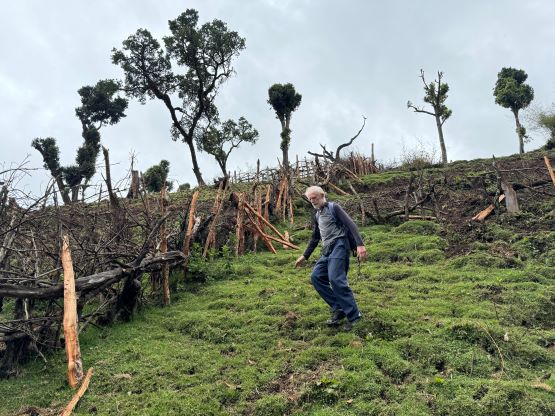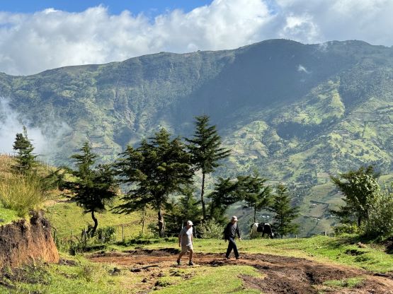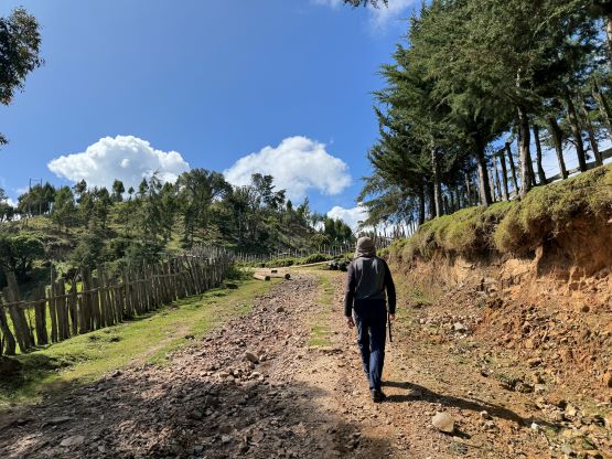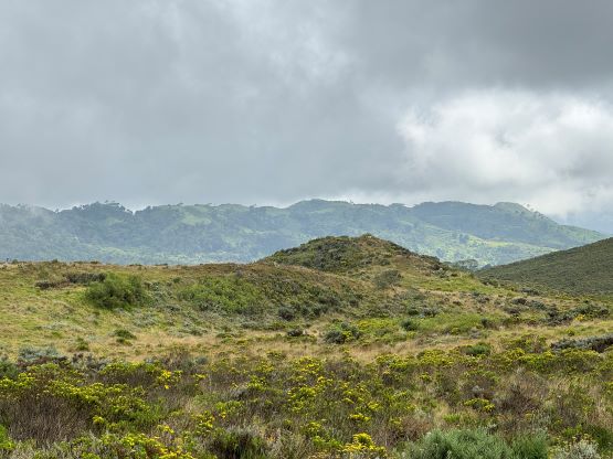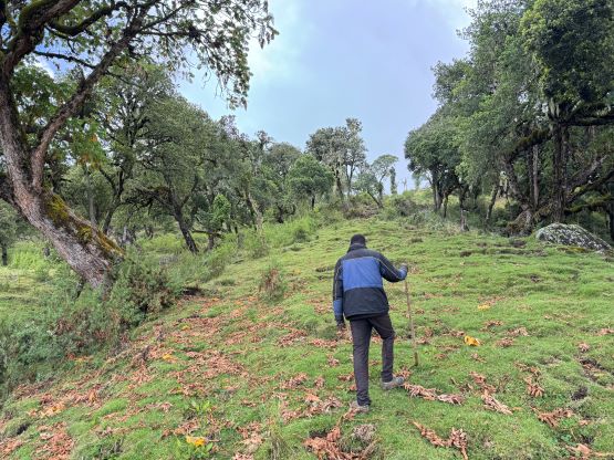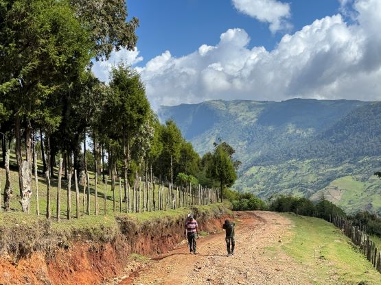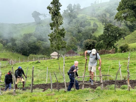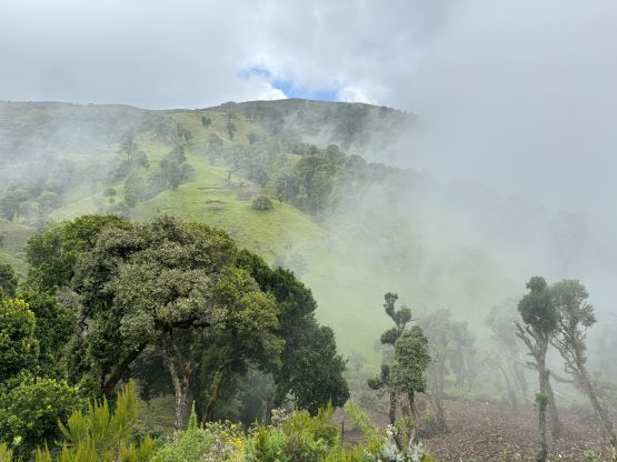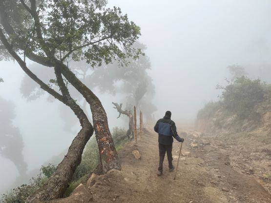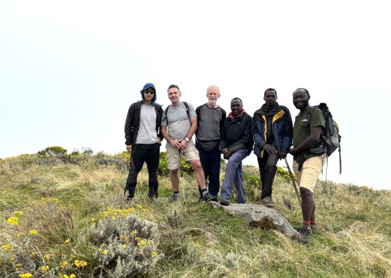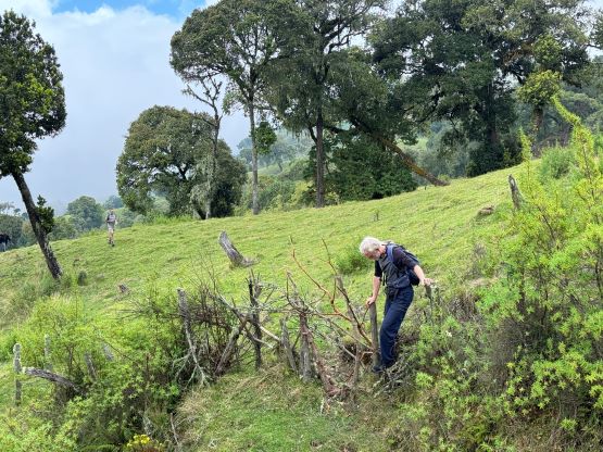 We parked at the exact same spot where Deividas/Dave’s group parked two years ago, so we were about an hour away from the summit via the SW slopes. This route is significantly shorter than the south ridge route that Adam and Petter took in Feb. 2020. I honestly had no clue why they opted for that long route that essentially turned a half day stroll into an overnight expedition. The roads are all (correctly) shown on the Gaia map. Our route does however involves “trespassing” into a maze of farmlands so it was essential to have the local guides showing the way. I’m sure the guide had asked for our permission as we literally hopped across at least 15 barbed wire fences but nobody seemed to come to fuss with us. There were actually two local guides and Elijah would also come along with us. Julian opted to stay behind to guard the vehicle. The faster of the two local guides kept directing us to traverse climber’s right and I was confused. I thought it was to avoid bushwhacking in the forest but we later realized that he was actually aiming for the south summit thinking that’s the actual high point. We eventually crested the ridge and corrected his mistake. This guide then recalled that about two years ago, another group showed up and did the north summit. Rob, Alastair and I explained that we wanted to do the same as the north peak is definitely higher. There’s a new road traversing the undulating south ridge so our plodding was considerably faster than expected, that in short time we all made the summit. The highest point required a short thrash to reach. The guides explained that this road was built recently so that the government could step in if there’s another conflict between the two nearby tribes. When Deividas etc. came there was some tension between the tribes and they were actually told to hire 15 rangers with guns for safety. They had somehow bypassed that but the political situation is definitely not always stable here.