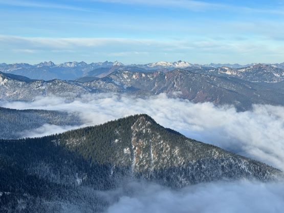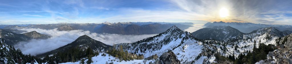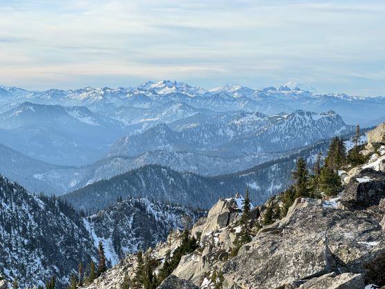 Labyrinth Mountain is a popular objective in the broader vicinity of Stevens Pass and boasts over 500 m prominence. This is a short hike with a trail to the summit that involves only 700 m elevation gain. The only difficulty comes from the access as one does need to drive some miles on logging roads, from Smithbrook Creek to Lake Minotaur trail-head. The road condition was rather excellent. I think a normal SUV should be sufficient enough but I opted to take the Tacoma for extra contingency. I had seen a recent trip report mentioning some icy sections on the north side of Nason Ridge’s crest so I decided to carry tire chains in the truck to be 100% sure. That trail-head, on the other hand, helped to confirm that a “trail” had been broken and snowshoes were not needed. This was the sole reason why I chose this objective, that was to take advantage of this recent condition update.