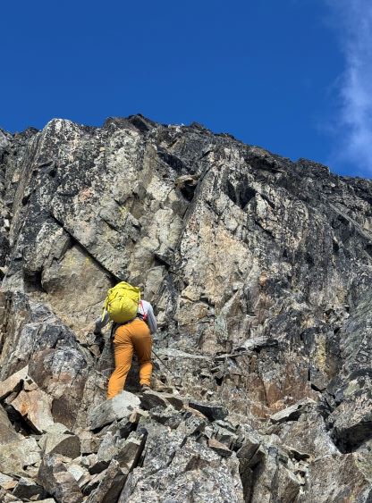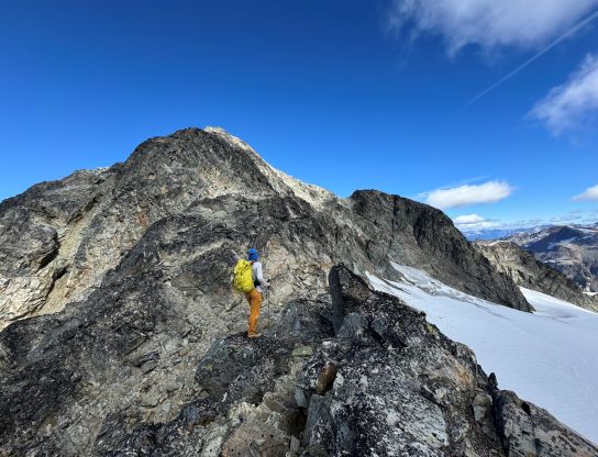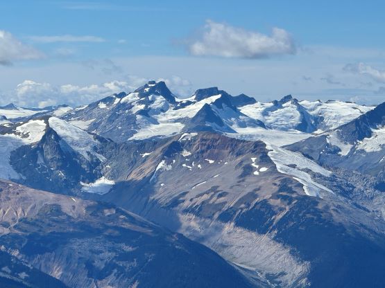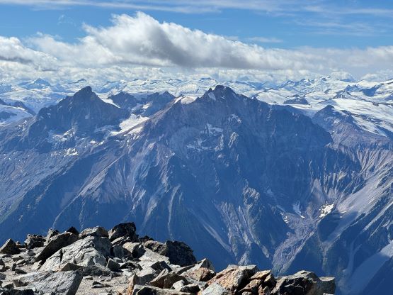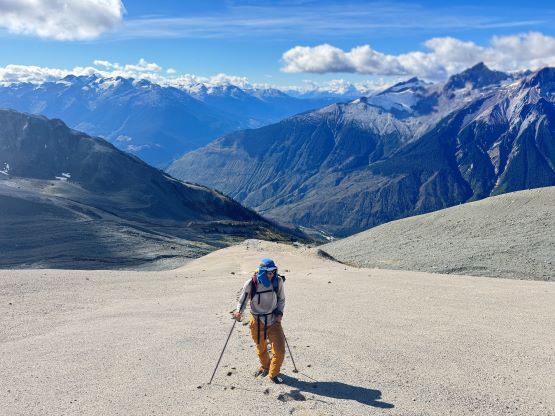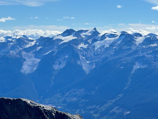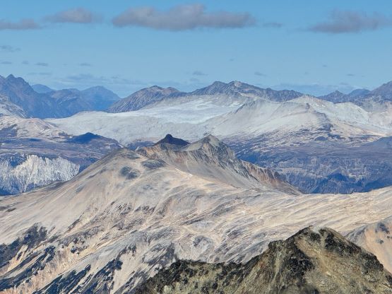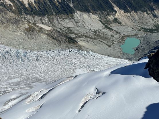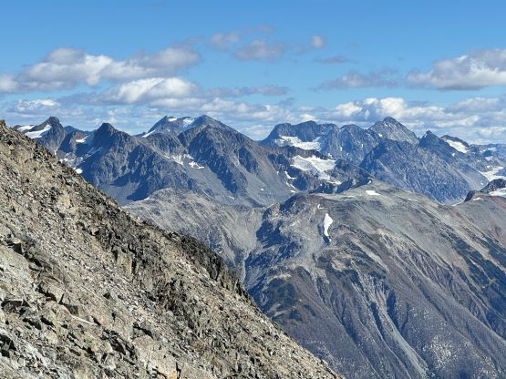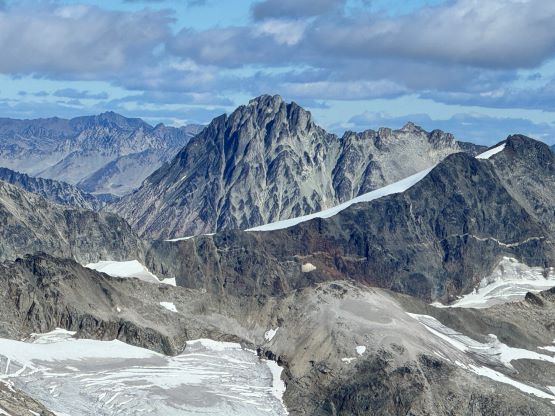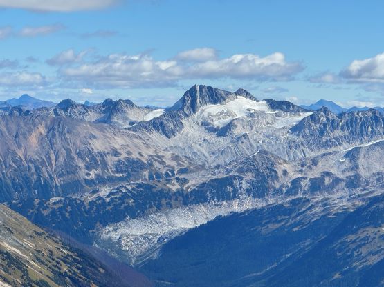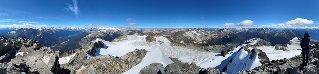 Mt. Athelstan is a large glaciated massif in the headwaters of Upper Lillooet River and is in fact one of the tallest peaks in the loosely defined region of SW British Columbia. It is however, not as prominence as one might expect (only P500+ meters) as it’s connected towards the higher Mt. Ethelweard by some long and undulating glaciated ridges. Regardless whether this is a P600m objective or not Mt. Athelstan should receive more attention than what a simple Google search shows. Most of the trip reports were actually from rock climbers putting up routes on the walls facing Salal Creek, including the “Randy Stoltmann Tower” but those routes have nothing to do with the summit of Mt. Athelstan. There was hardly any “beta” about the summit scramble with the most detailed one being Dean Perez’s vaguely described trip from the lower Salal Creek. This peak had been on my radar for at least 8 years and I thought for sure that someone else would beat me to publish a detailed account on this objective given that it’s only 3rd class and can be done in one day, but I was being too optimistic about the popularity of this area. Fast forward to 2024 I finally decided to pull the trigger and I still had to resolve the unknowns. I did know that a few friends including Alex R. and Vlad M. had climbed it but they did not post trip reports back in the old days. I went back to Dean’s account and this time, with my previous experience in Athelney Pass I was able to more or less put together Dean’s route, and between his ascent and decent lines I opted to take the descent (gully) variation mostly for simpler navigation.