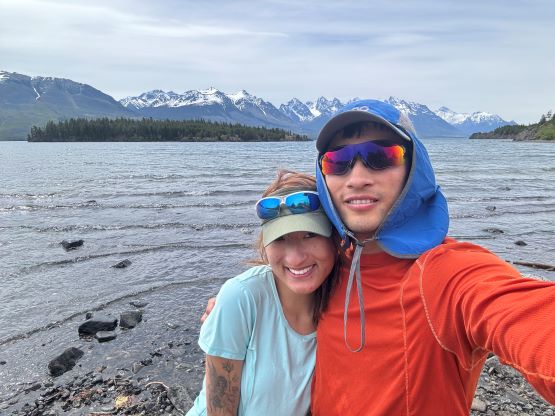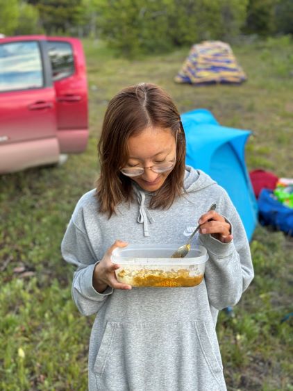 Erica and I had been hanging out together for a while and I was keen to take her on a “project trip” as what we had been doing recently was cool, but not long/difficult enough. I was confident that she could handle Mt. Tatlow if I brought a rope along and do all of the leading, so I planned this project mostly with Erica. Meanwhile Adam W. and Dave G. happened to be peak-bagging in B.C. so I shot them a last-minute message and sure enough, they were instantly in. No one else was aware of the plan as 4 was already large enough for this objective. The plan was to budget an entire day for driving (each way), and spend 3 days in Nemaia Valley for Mt. Tatlow and then Klokon/Nemaia. On Wednesday morning Erica and I left Surrey at 6 am and met Adam and Dave in Abbotsford. We together drove 3 separate vehicles to Williams Lake where Dave left his van behind. I considered this trip important for myself because this was my first foray to the north in the Coast Mountains and I had been dreaming about that for years. Sharing this experience with Erica along with two other good friends made it even more special. We made the 2-hour detour to drive up Mt. Alex Graham as planned, and then dashed SW onto Taseko Lake Road. There would be over 100 km of FSR driving each way, and the summit of Mt. Alex Graham was the last spot with some cell reception. The road was in some excellent conditions and the drive was very scenic. Past Davidson Bridge rec. site we turned onto Nemaia Valley road. After a scenic rest break at Konni Lake we drove past the small village where we could get some gas if we needed. Erica then directed us to the spur road that Matt spotted on the satellite images. The road was definitely narrow and muddy, but both of our vehicles got to the “trail-head”. There were still about 2 hours of daylight time so we leisurely set up the car-camp and cooked meals.