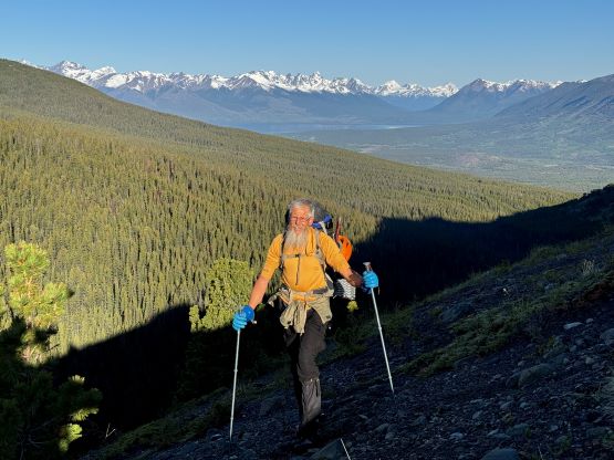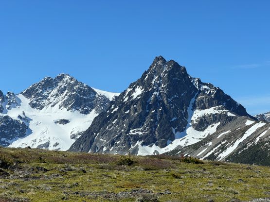 Mt. Tatlow, also traditionally known as Ts’il?os, is the highest peak in Nemaia Valley and one of the few “ultra prominent peaks” in the Chilcotins of British Columbia’s Coast Mountains. Trekking, mountaineering or even pointing at this sacred peak is considered prohibited by the locals so do consult with your own ethical values if deciding to use my “beta” for the climb. There are however, plenty of horse trails, a summit cairn and at least a few detailed trip reports out there on the internet even dating back to several decades ago. One party came back 3 days later after summitting, only to discover their vehicle being trashed and that might have something to do with climbing Mt. Tatlow, but we don’t know. In any case there are basically only two routes on the mountains – the standard NE Ridge and the N. Face glacier/icefall. To climb the glacier would be the coolest way to experience this mountain but the global warming had made it a 70-degree ice climb nowadays. The standard route is not to be taken lightly neither, and still requires some serious mountaineering on steep and exposed snow. Matt Juhasz had made a successful ascent in the spring of 2024 amazingly in just one day, and via an exploratory approach that he had scouted on the satellite images over the past years. Matt did not make this sound “easy” by any mean, but I was determined to follow his footsteps as soon as I saw a window forming. I wanted the window to be big enough to do Mt. Tatlow over 2 days (for the camping experience), as well as including Klokon Peak and Mt. Nemaia via Gulkas’ route, so I patiently waited for a few weeks.