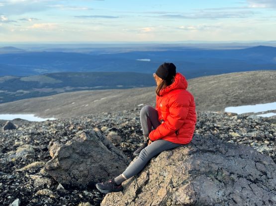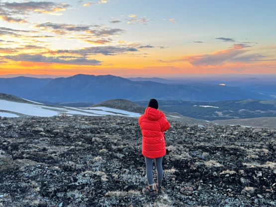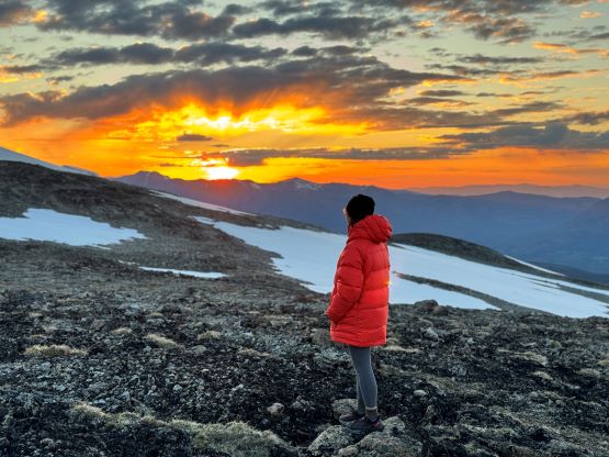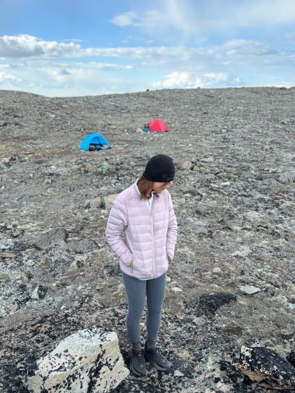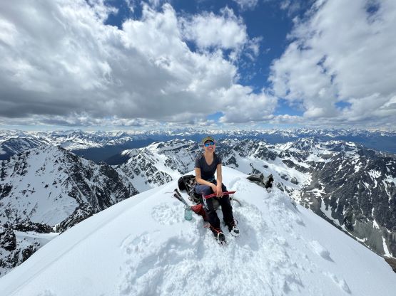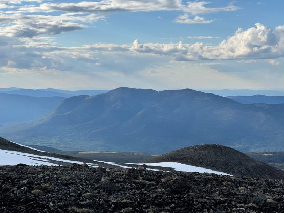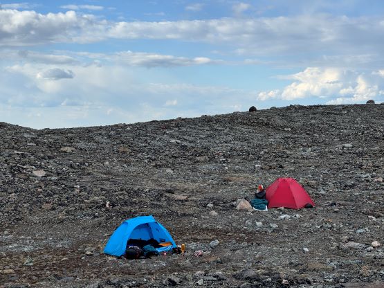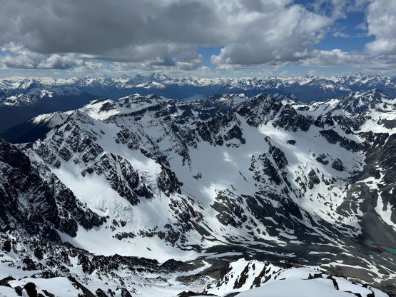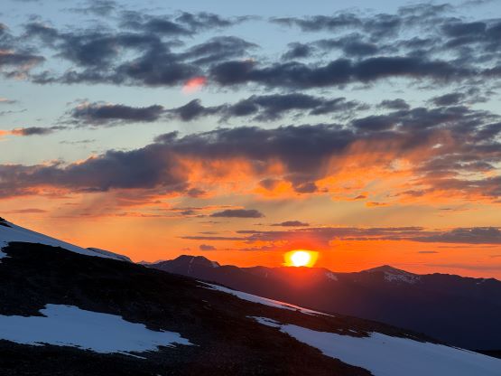 Our truck-to-summit time (excluding setting up camp) was only slightly longer than Matt’s time and I was impressed considering the heavy ass packs that we had hauled two thirds of the way up the mountain, so we deserved a long break on the summit. The peaks to the west made show for us except for Mt. Waddington, but I was able to pick out Good Hope Mtn. and Mt. Queen Bess along with the closer giants like Taseko Mountain. I had never seen these mountains before so it was definitely a mind-blowing experience to be standing on the summit of Mt. Tatlow with clear views. This was also my first 3000er in the Coast Mountains. In any case we plunged down the snow face and then easily traversed back to the fixed rope. I set up the NanoTraxion for Erica and then both Dave and I ascended using a prussik as self-belay. I thought the climbing was quite chill on the return. While descending the never-ending NE Ridge we got hit briefly by a couple snow squalls but those only made the atmosphere more dramatic. There was more rain events in the afternoon but we got back to camp in time to take a shelter. Once the rain stopped Erica and I did a few laps around the camp to soak in the views. The sunset was at 10 pm these days so it was a bit difficult to drag our tired selves out of the comfortable sleeping bags, but I made us to go outside and it was worthwhile.