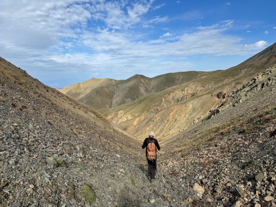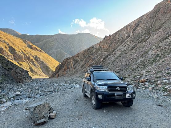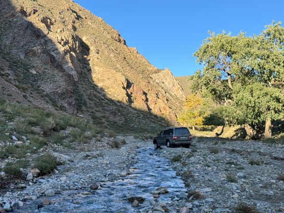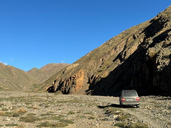 We took our time on the descent. I did dash ahead down the south ridge but for the canyon bed I opted to let Petter lead ahead to set the pace. Our round trip time was 3 hours 45 minutes and we got back to camp about 15 minutes later than the promised time. Gangaa was already up in the canyon looking for us but we were at least not too far behind. After a hasty packing process we were on the road again, and made much better time driving out of this long canyon. We then took Manlai’s route towards NE and bypassed the sand dunes on the far eastern side. The rest of the day was then spent navigating hundreds and hundreds of kilometers of rough roads towards SE, firstly to Bogd and eventually to the camping area next to Servey. The plan was to camp but we got there late (past sunset) and the mosquitoes were horrendous. After being eaten alive Gangaa decided for us to spend some $$$ at a privately owned campground with guesthouses. That was a pleasant surprise. I even managed to take a much needed but cold shower.