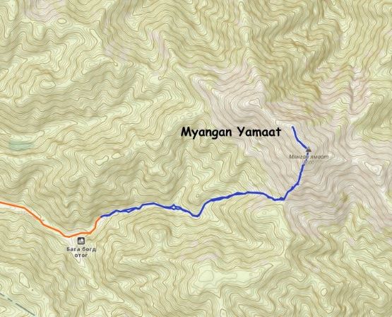 Myangan Yamaat is one of the three “ultra prominent peaks” down south in the Gobi area of Mongolia and there seem to have at least two alternative names, “Bara Bogd” and “Bogdin Tergun Uul” according to various sources. Among these three Gobi objectives Myangan Yamaat has the most complicated access problems due to some lengthy driving (over 20 km) required on a river bed inside a canyon. Rob and Deividas had figured out the solution through two attempts in the previous year and Petter and I would take full advantage of their work. In fact, among the few peaks that we did end up using their “beta” this is the one that we had to give them the most amount of credit. The “road” in that canyon was hardly visible on the satellite images and it would take a lot of determination to commit to this route without having much “beta”, let alone to actually figure it out. Our local drivers and guides had absolutely no idea about this peak so we essentially “guided” them to the start of Rob/Deividas’ route.