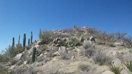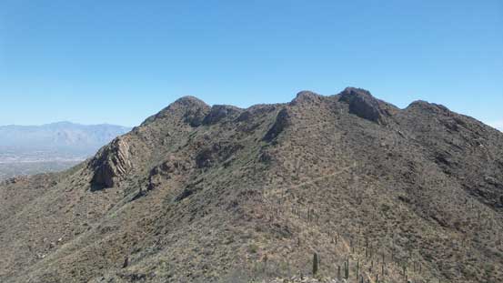 Amole Peak has only 120 feet of prominence and is literally just a small bump along the west ridge of Wasson Peak. However, it is officially the second highest peak of the Tucson Mountains and the west unit of Saguaro National Park so there is still some reasons to check it out, other than a mere reason to increase the number of my peak-list by one as I’m a peak-bagger. Any official summit is legitimate in my book. Getting to the summit of Amole Peak requires brief off-trail travel but nothing worth noting, and the whole trip is written in my Wasson Peak’s trip report.