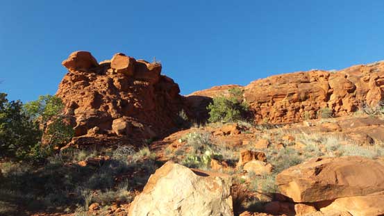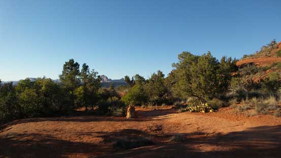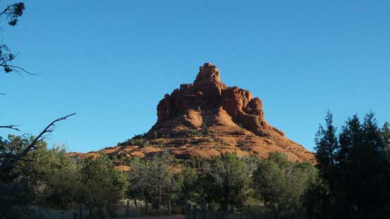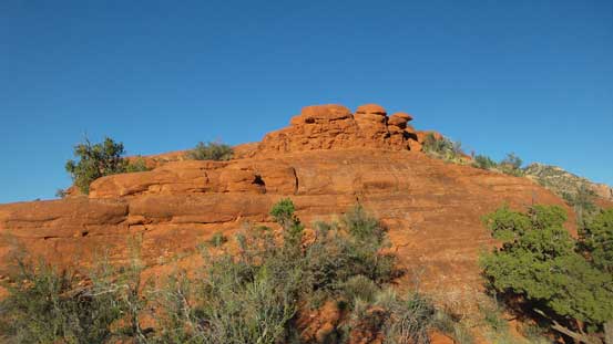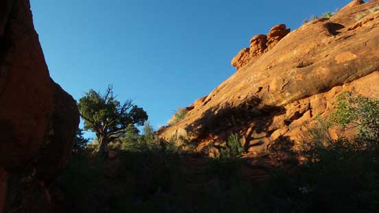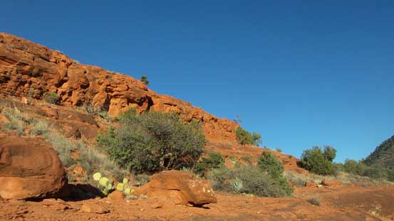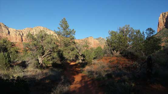 From the town of Sedona it’s a scenic 15 minutes drive down south following SR 179 to the trail-head “Bell Rock Vista”. Finding a spot to park wasn’t that difficult at this time of a day as many tourists had already gone. The lot was still mostly full though. From the trail-head “Baby Bell” was nicely visible with hardly any significant elevation gain. The towering Courthouse Butte and Bell Rock was also displaced in front teasing any peak-bagger like myself. I had not done much research but there’s a trail called “Baby Bell Trail” so naturally would be the one I took. This brought me initially down into a wooded drainage and then gently out on the opposite side.