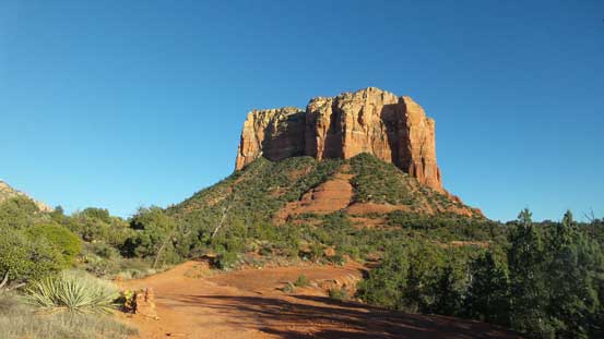 From the town of Sedona it’s a scenic 15 minutes drive down south following SR 179 to the trail-head “Bell Rock Vista”. Finding a spot to park wasn’t that difficult at this time of a day as many tourists had already gone. The lot was still mostly full though. From the trail-head “Baby Bell” was nicely visible with hardly any significant elevation gain. The towering Courthouse Butte and Bell Rock was also displaced in front teasing any peak-bagger like myself. I had not done much research but there’s a trail called “Baby Bell Trail” so naturally would be the one I took. This brought me initially down into a wooded drainage and then gently out on the opposite side.
