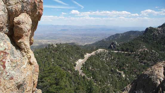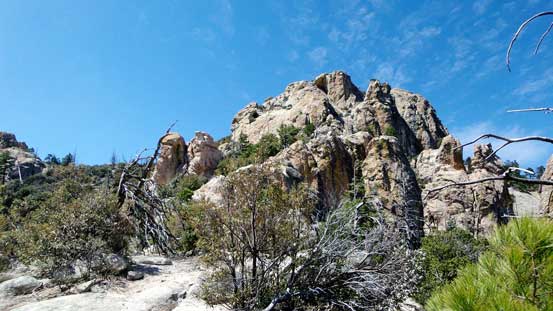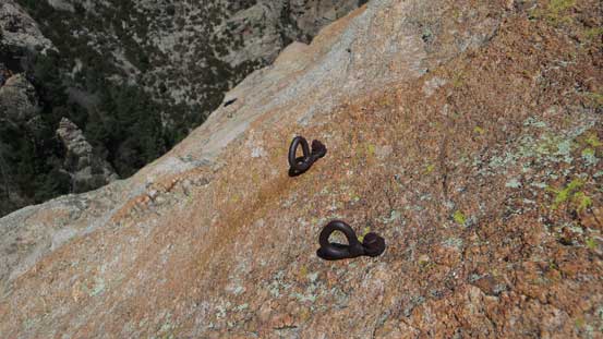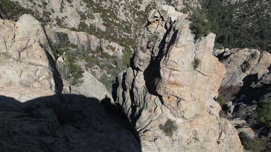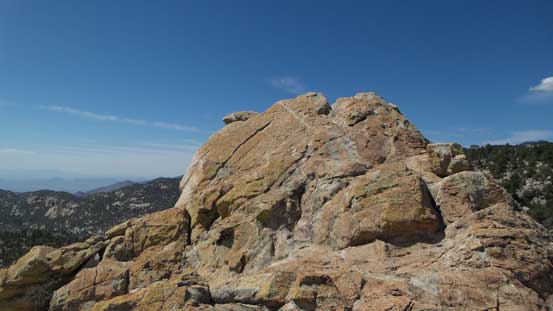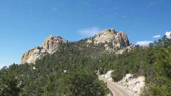 I did it as part of my grand slam along Mt. Lemmon Highway and much of the day is written in Mt. Lemmon’s trip report. Here I’m only focusing on the ascent of Barnum Rock from San Pedro Vista. I did come prepared with the confusion of this name so to claim this “summit” I figured I had to bag as many rock spires as possible. Some of which does not look very scrambler-friendly so I even packed my rock shoes for that purpose. The first spire was a small one, but the most technical among the 4 that I ascended. I did end up using my rock shoes but mostly because I brought them up. There were a set of rappel pitons indicating there indeed does not have an easy route up.