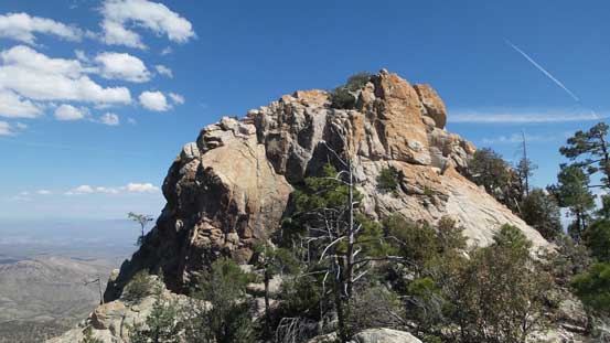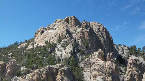 On the far eastern reach of Incinerator Ridge of the Santa Catalina Mountains north-east of the city of Tucson sits a couple impressive rock spires/towers and this area is officially known as Barnum Rock. It is unclear whether or not this name applies to the highest tower in this group and many sources seem to confuse with each other. It’s more likely that this name refers only to the rock formation rather than the peak but what the heck it’s a gorgeous objective in its own anyway. There’s a good trail heading up from San Pedro Vista and much of the hike can be done in under half an hour for most parties. However, the view is very expansive on a clear day.