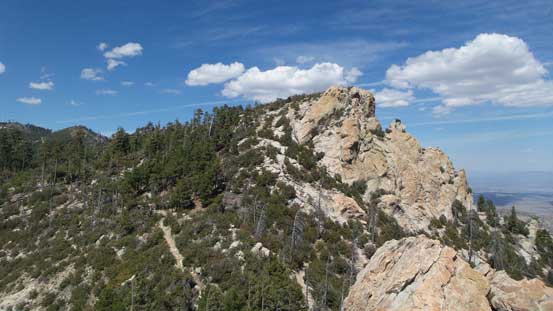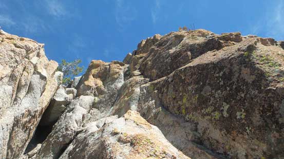 And then I resumed the ascent westwards onto a large saddle. The true summit is on the right hand side but I’d focus on the peak on my left first. There are two towers upon close inspection and both are class 2+ or low class 3 in my opinion. I ascended both using my sneakers only but the smaller of the two did require a couple careful moves. And then I got to focus on the true summit which appeared to be the easiest.