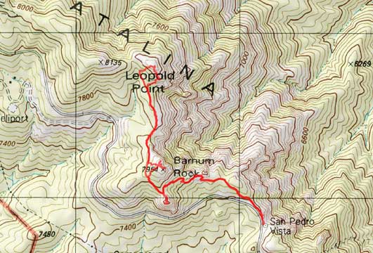 Barnum Rock and Leopold Point hiking route. GPX DL