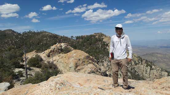I did it as part of my grand slam along Mt. Lemmon Highway and much of the day is written in Mt. Lemmon’s trip report. Here I’m only focusing on the ascent of Barnum Rock from San Pedro Vista. I did come prepared with the confusion of this name so to claim this “summit” I figured I had to bag as many rock spires as possible. Some of which does not look very scrambler-friendly so I even packed my rock shoes for that purpose. The first spire was a small one, but the most technical among the 4 that I ascended. I did end up using my rock shoes but mostly because I brought them up. There were a set of rappel pitons indicating there indeed does not have an easy route up.