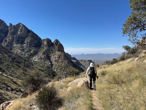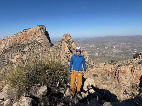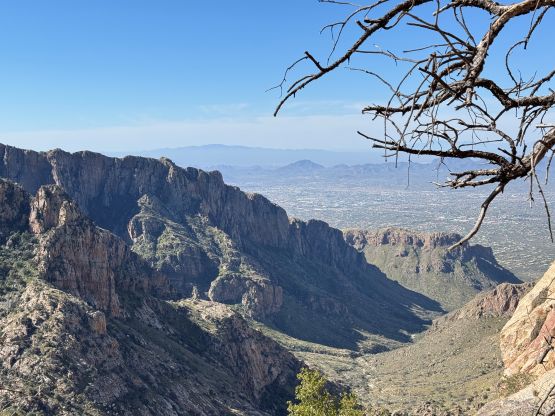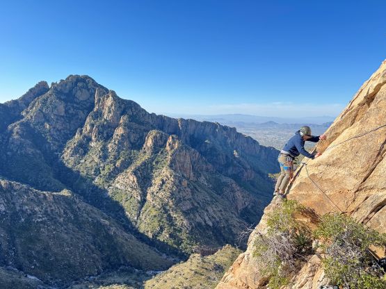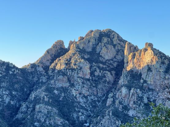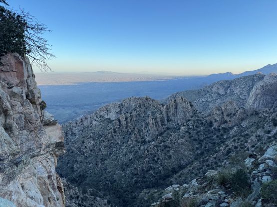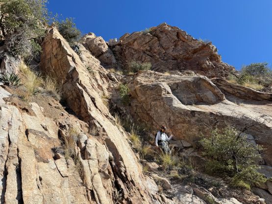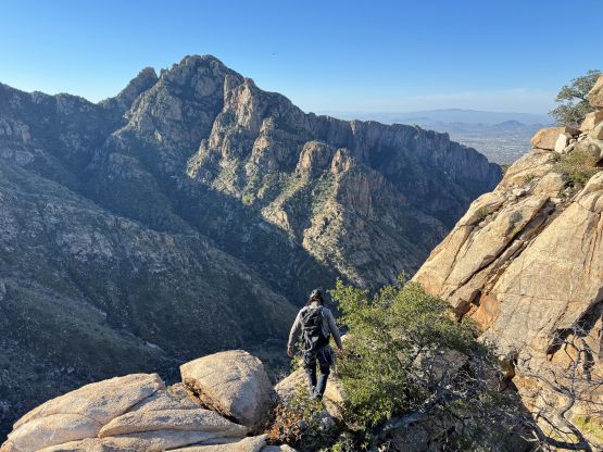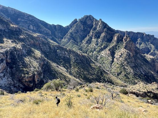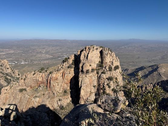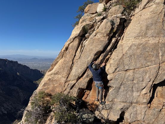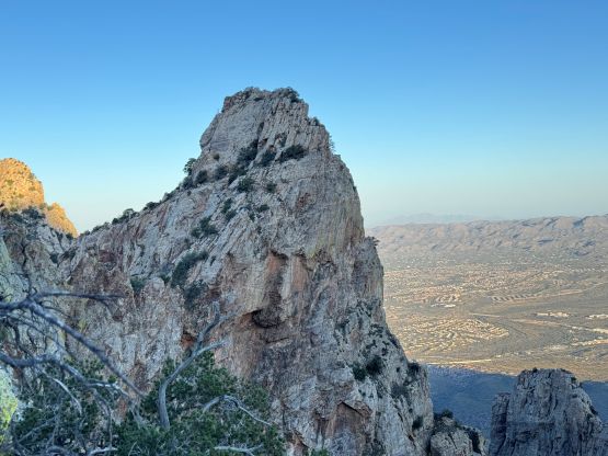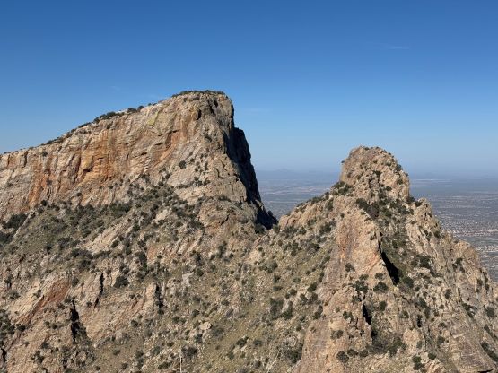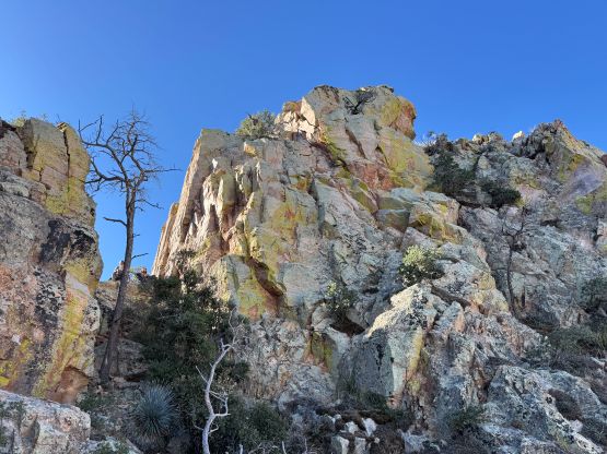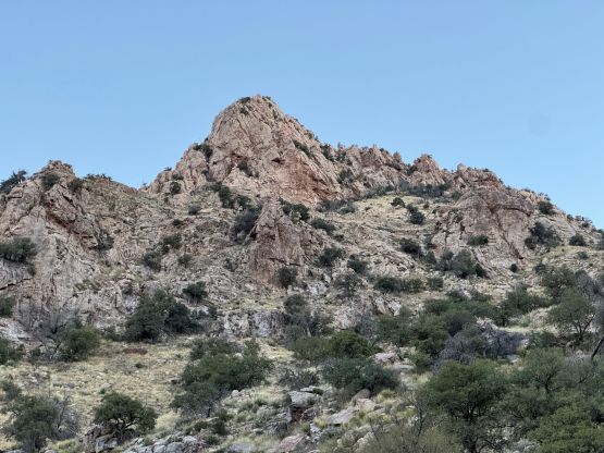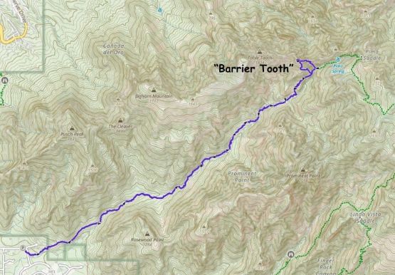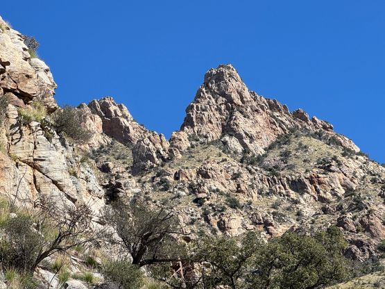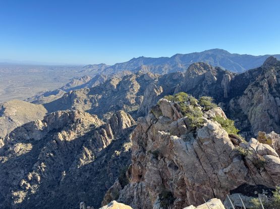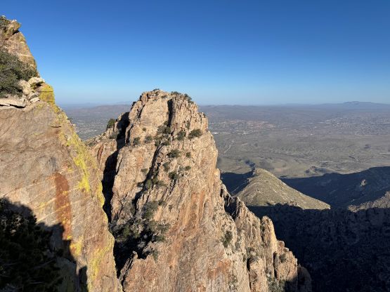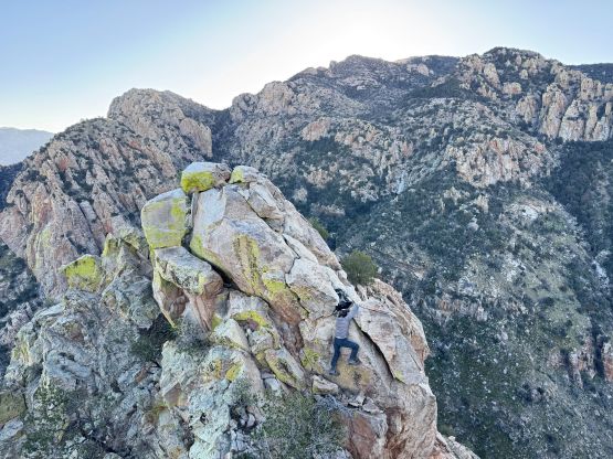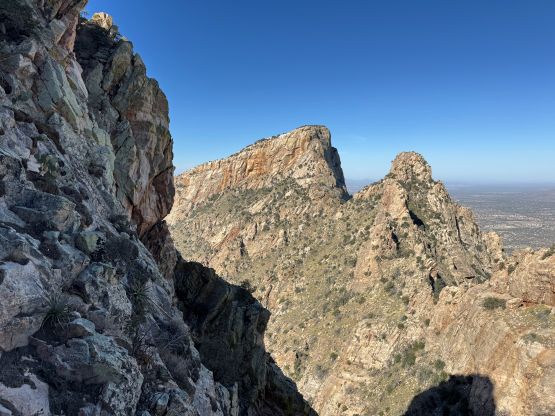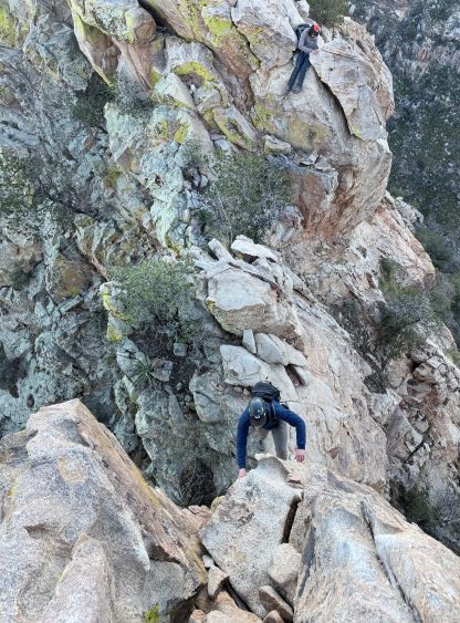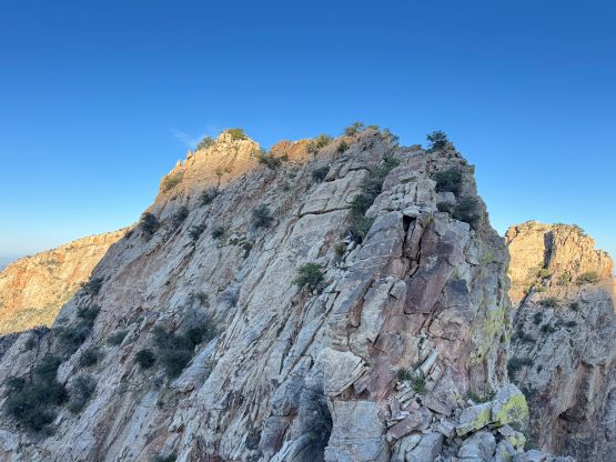 “Barrier Tooth” is the unofficial name of the easternmost of the 4 “Wolverine Teeth” that stretches from Table Mountain towards Pima Saddle in Santa Catalina Mountains. These peaks are among some of the more obscured objectives even among local climbers based in Tucson, and the only reason I did it was because I teamed up with the Arizonian climbers Jesse and Kyle, whom were recommended by Matthias. I did two peaks with Matthias in the previous day and he suggested me to team up with Jesse J. who’s a much better technical climber living in Tucson area. Of course when I joined some local die-hard’s trips the objectives often turned out to be obscured. In this case there’s no detailed beta beside knowing a bunch of scramblers tried it and failed. The true summit likely requires technical climbing so we would bring a rope with a light rack just in case.