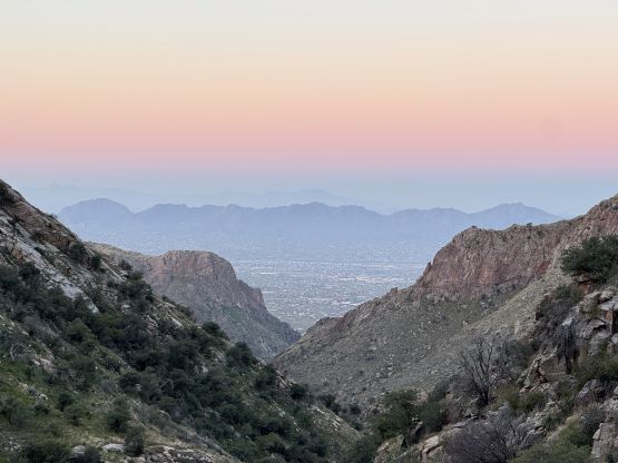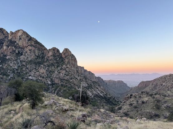 There’s a complication that I wouldn’t be having a vehicle for the last day of this trip, and Jesse and Kyle’s driving direction also didn’t make sense for grabbing me. I eventually decided to get dropped off at Pima Canyon trail-head by Erica in the previous evening and spent the night there alone camping in my tent. Of course camping on a public trail-head like this is illegal but I couldn’t care. Luckily for me there’s a massive bulldozer so I simply pitched my tent behind it. Unless someone searched the entire lot looking for illegal campers I wouldn’t be spotted by anyone in that spot. It’s been a while since I did a stealth camp and it’s honestly quite fun. The plan was to start hiking at 4:30 am since the approach was long and I needed to be in Phoenix no later than 5 pm for my flight back home.