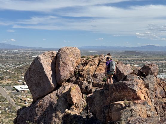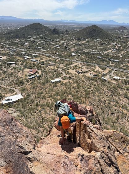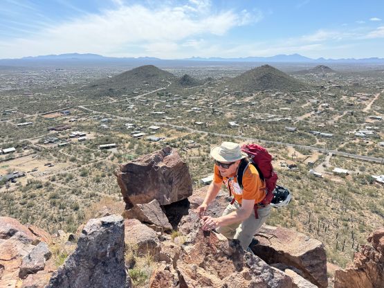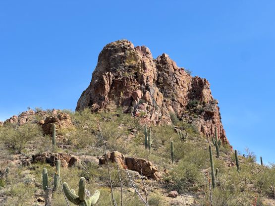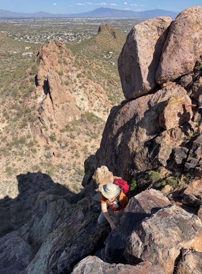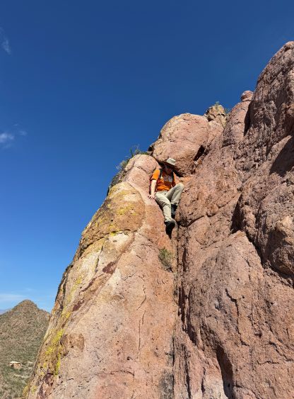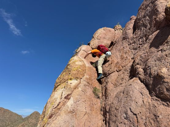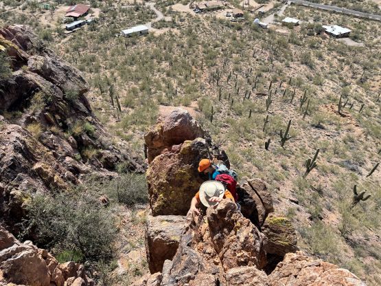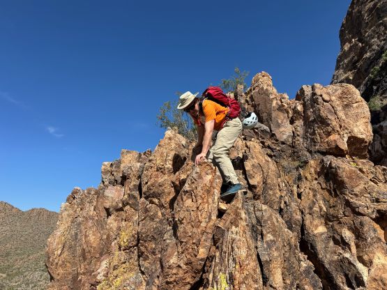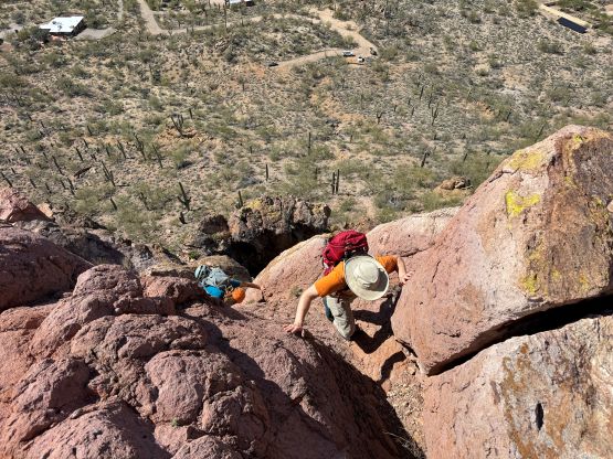 This was the 5th day of the Arizona peak-bagging trip. Caspar and Erica was not committed to do anything so I was down to find my own partner. Thankfully Matthias was interested in joining for half a day (he had some family commitments in the morning). I would be located in the Tucson vicinity and the objective was eventually decided to be Beehive Peak. I had never heard of this peak previously but I was instantly sold. I even managed to convince Erica and Caspar to come along, but their plan was to join as an independent rope team and potentially do a harder route. That’s perfectly fine as the “beta” we had was Jesse Johnson’s trip report which described the ascent as “low 5th class”. It wasn’t very clear where exactly Jesse went, so we did our own route-finding in situ and ended up climbing a completely different route, which was longer but technically easier. I think our route (west ridge) should be the standard scramble route for the future parties, but those who go up there with a rope can rappel off Jesse’s route. Beehive Peak itself would be too short for Matthias to drive 2 hours away from Phoenix, so we had to tag a secondary objective afterwards, which would be that unnamed but higher and more prominent peak to the north.